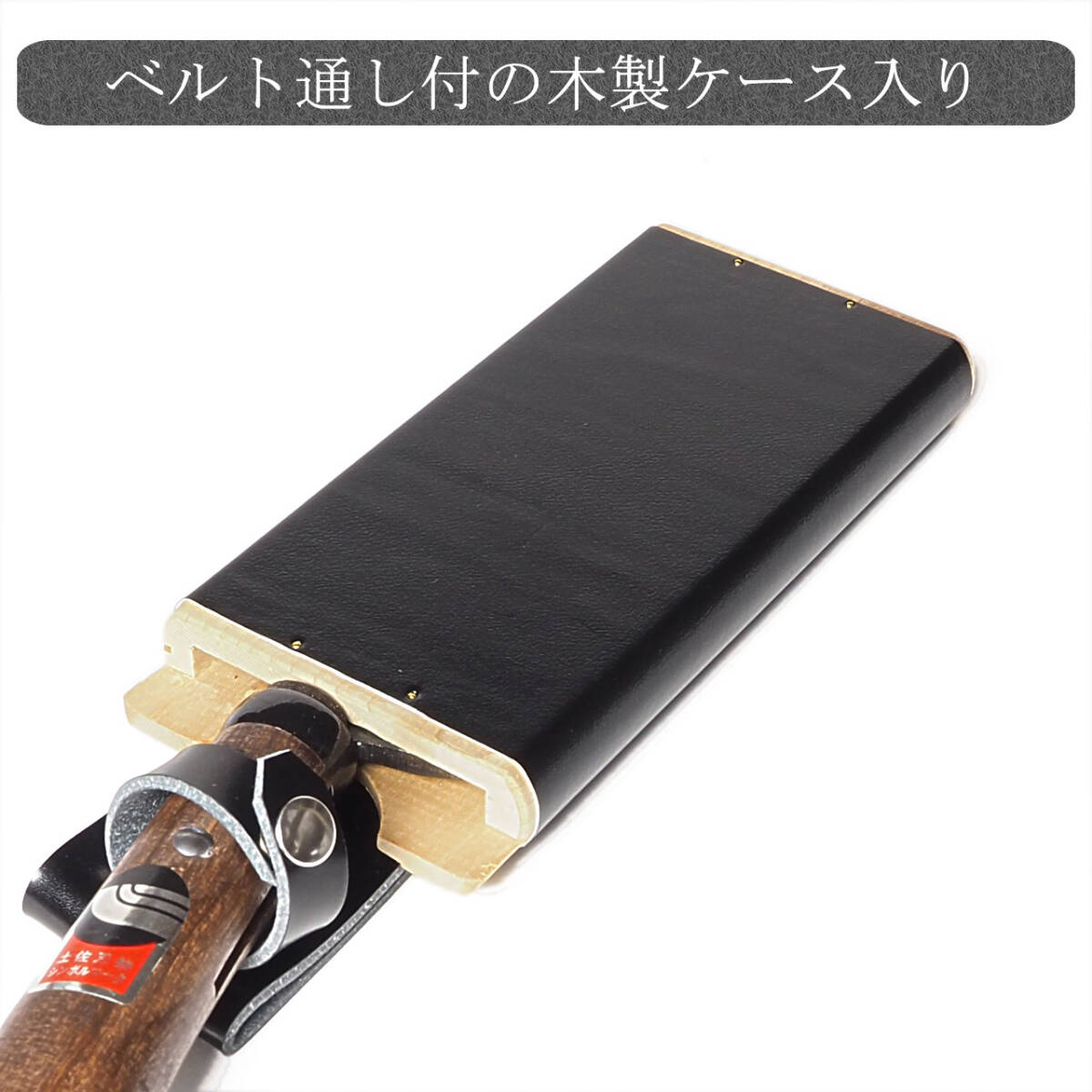 軽く頑丈な「ほうの木」を使用した木製の鞘に入れています。