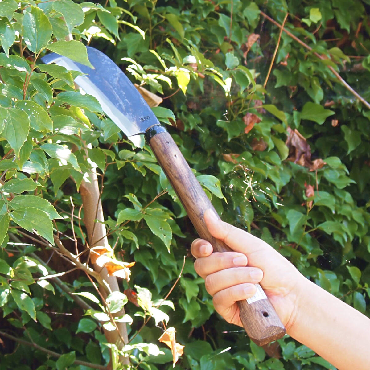 柄の長さが30cmと通常の腰鉈よりも長い柄を付けているので、高い場所の枝を落とすのにも活躍します。