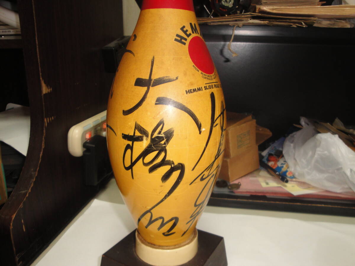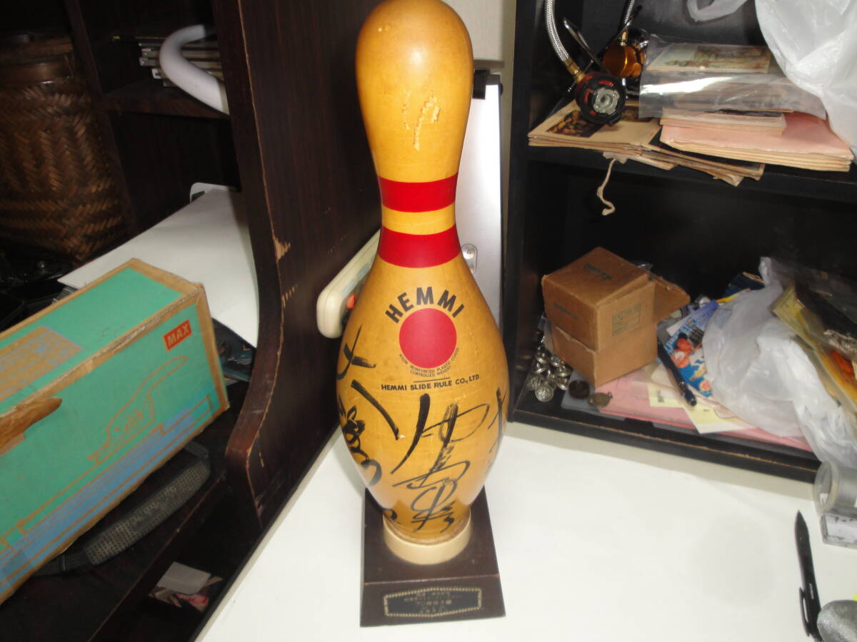 ☆HEMMI(ヘンミ・計算尺メーカー)主催《1周年記念マスターズトーナメント”プロ勝抜き賞45.4.29(サイン入り木製ピン》☆ボーリング 貴重