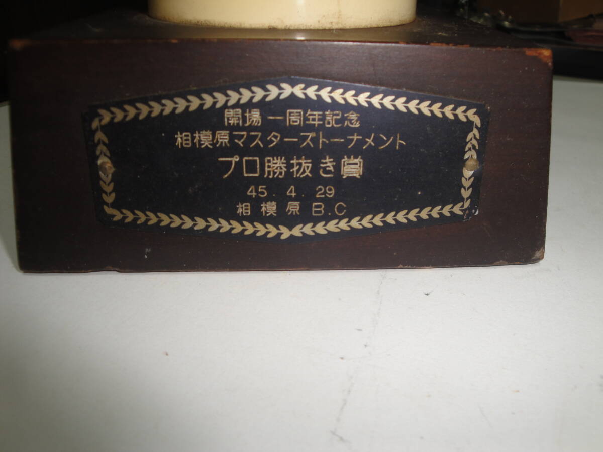 ☆相模原B.C・開場1周年記念《相模原マスターズトーナメント”プロ勝抜き賞45.4.29(豪華サイン入り木製ピン”》☆です。1、記念品:サイズ約高さ44.5×台座(11×11)cm、重さ約1900g。年代相応の黄ばみ・汚れ・ひび等があります。全く確証はありませんが、推論ですが当時の大物プロボーラー(?岩上太郎?大橋明?矢島純一?…)のサインがあります。このような中古品ですので,新品同様なものをお求めの方・気になさる方のご入札はご遠慮願います。写真のものが全てです。写真で判断願います。ノークレームでお願いいたします。送料はゆうパック80サイズの料金です。発送は原則週2回です。お手数をおかけしますがご入札の前に、必ずフォローリスト(自己紹介欄)と当該記載内容のご確認をお願いいたします(2日以上連絡がつかないときも,お手数をおかけしますがフォローリスト(自己紹介欄)をご覧の上ご連絡をお願いいたします)。中古品でございますのでノークレームでお願いいたします。問題発生時の対応につきましては、誠意をもって対応させていただきます。メールをいただければ5日程度の取置き(同梱)はOKですのでぜひご利用ください。落札後7日以上連絡が取れないときは自動的にキャンセルさせていただきます。(注)①迅速に対応するため、“「取引ナビ」:取引メッセージ”でお願いいたします。②ゆうパック(着払いの対応はいたしません)ご利用の場合、請求送料は郵便局への持込み割引を含み一切割引の無い料金とさせていただきます(実際の発送料金とは、120円の差があります)。③状態の判断はあくまでの私見ですのでご理解願います。④評価の悪いが5個以上の方、新規の方は、お取引を確実にしていただける旨ご連絡ください。ご連絡のない場合は削除させていただきます。⑤ご入札後のキャンセルはできませんので十分に注意してご入札に参加願います。⑥領収書の発行はできません 。⑦万一、落札品が欠品・不具合で取引出来ない場合は,誠に申し訳ありません。実費(ご落札金額、送料、振込手数料)のみにて対応させていただきます。【必ず自己紹介をお読みください。対応や発送できない期間などご案内しております】