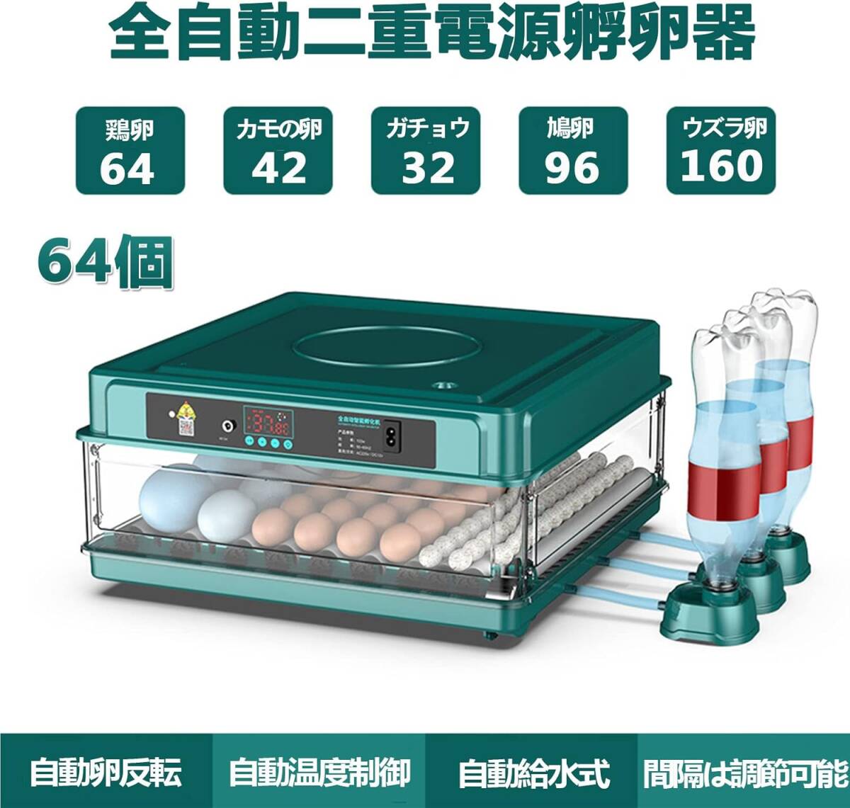 自動インキュベーター 自動孵卵器 自動転卵 64枚 大容量 鳥類専用 自動温度制御 自動給水式 簡単操作 重電源 低騒音 業務用 家庭用 孵化用