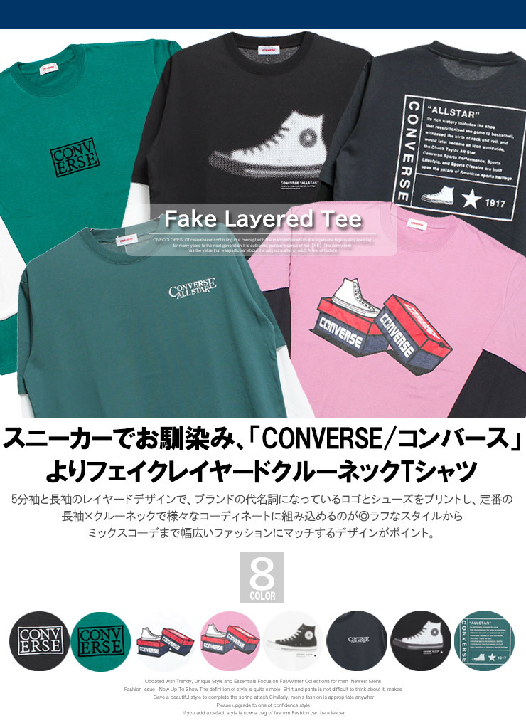 商品説明 | スニーカーでお馴染み、「CONVERSE/コンバース」のフェイクレイヤードプリントクルーネックTシャツの登場です。 |