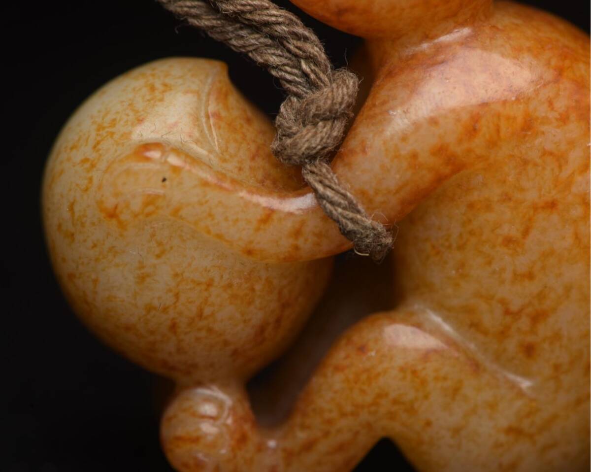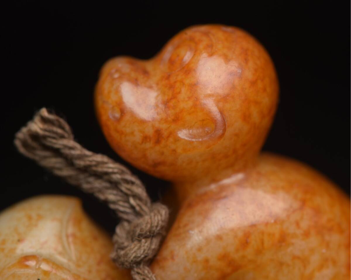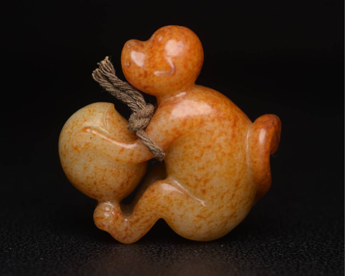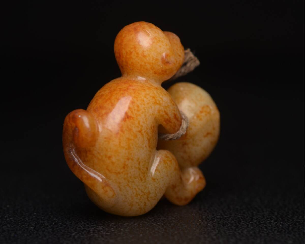 『清・古和田玉彫・靈猴献寿・双色・吊墜・鏈付』極細工・骨董品・古賞物・中国古玩・中国古美術