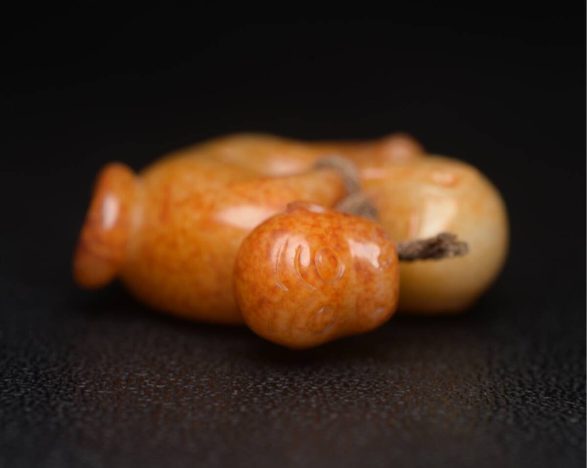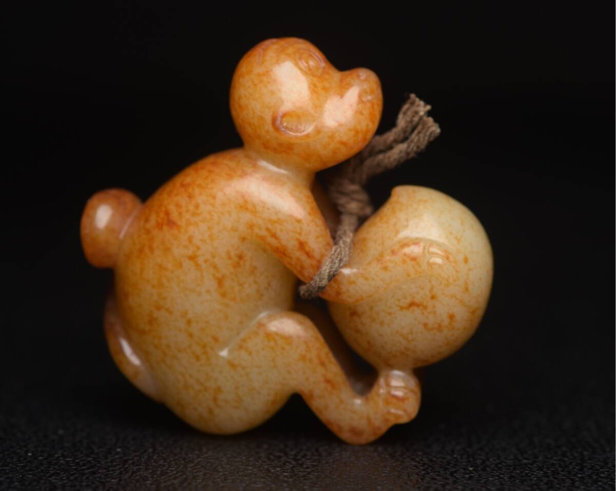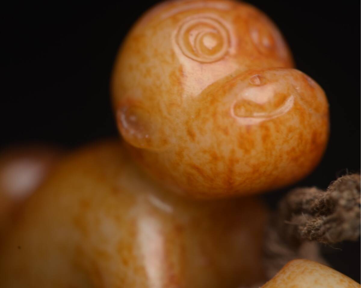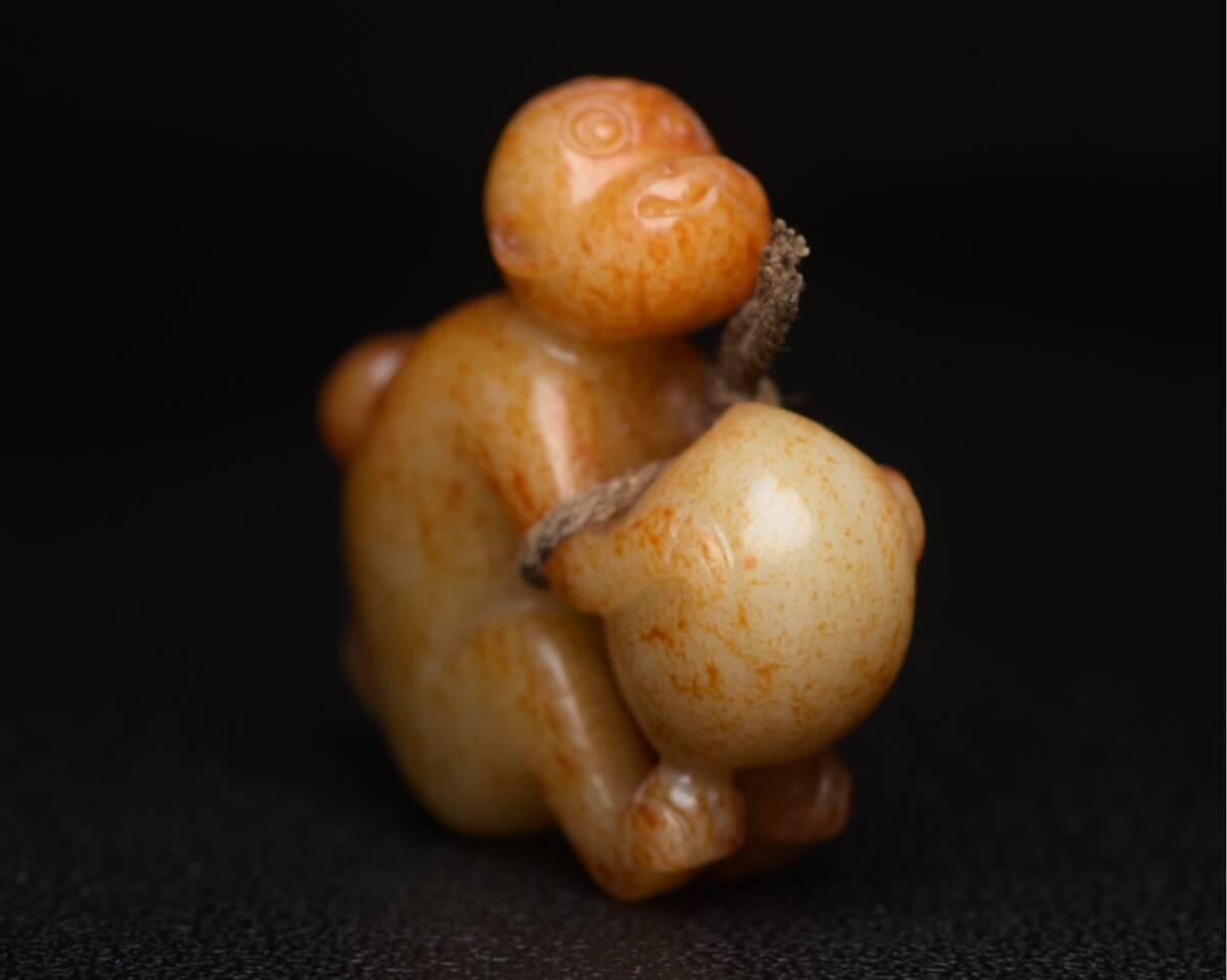 『清・古和田玉彫・靈猴献寿・双色・吊墜・鏈付』極細工・骨董品・古賞物・中国古玩・中国古美術