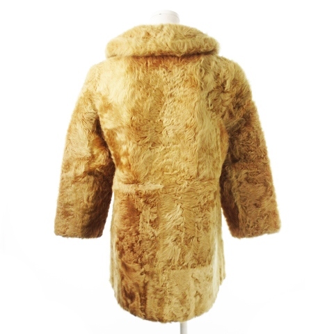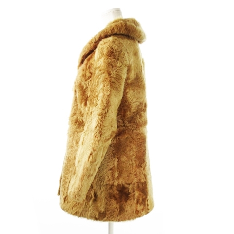 ノーブランド ファーコート ラムファー 毛皮 ミドル ショールカラー 茶 ブラウン /CK6 ■GY18 レディース