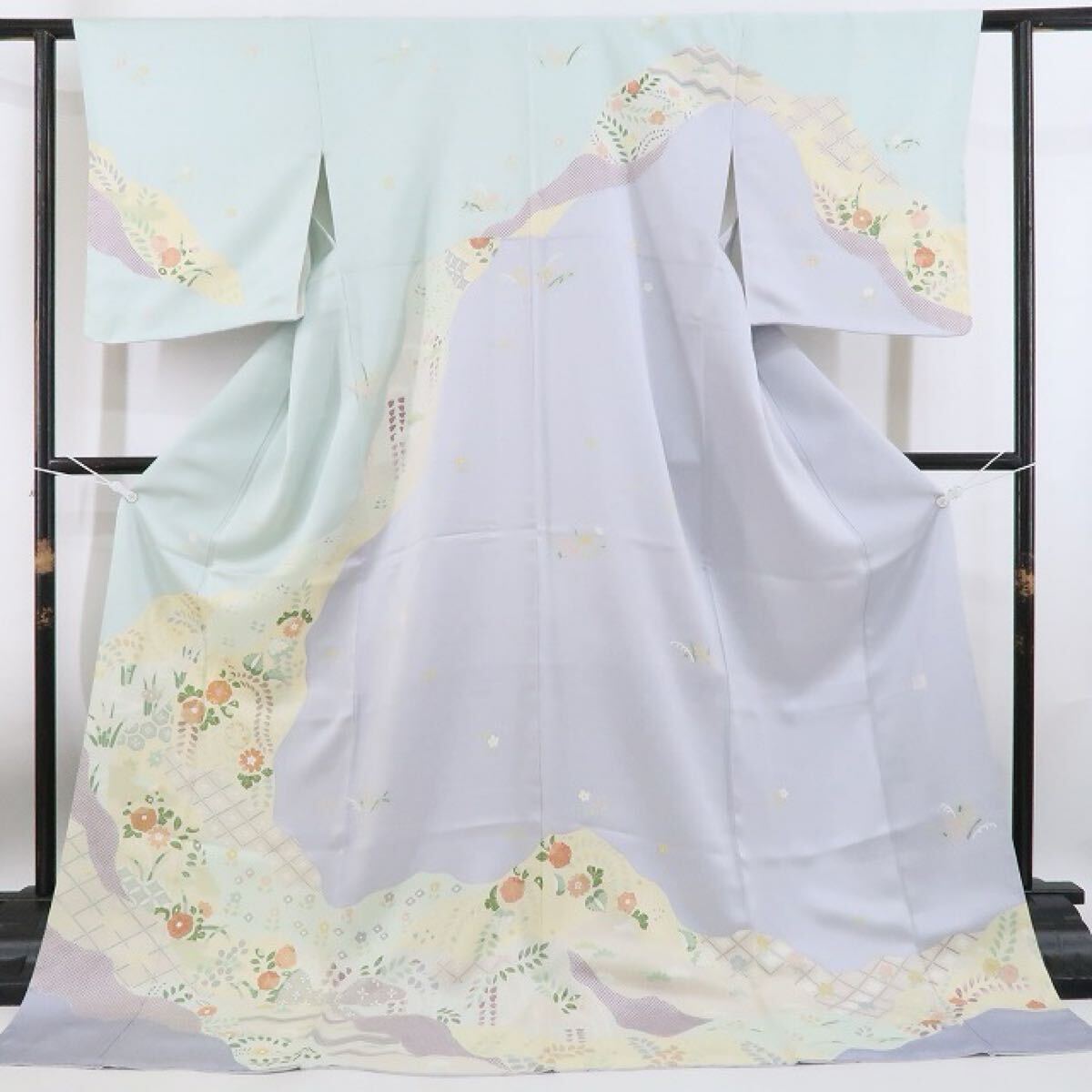 tomihisa 新品 京友禅 落款 着物 正絹 仕付け糸付 作家物“隠し味も花咲く春の流れ”訪問着 5325