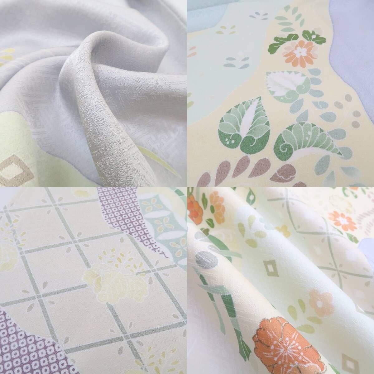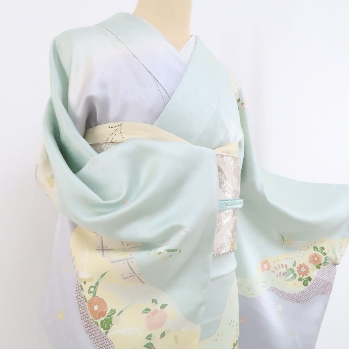 左袖付けに保管時に付いた目立たぬしみがございますが、撮影のため一度着付けた“あなただけに花咲く”真新しい一品。