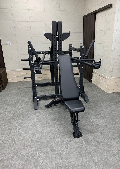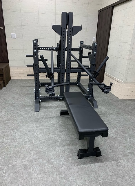 また、長い方のJフックを使用すれば、フリーウエイトのベンチプレスもできます。