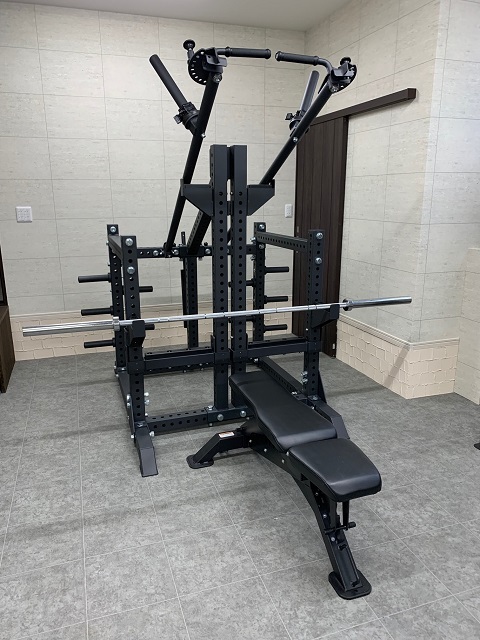 付属のバーを使用して、スクワットやベンチプレスも可能です。