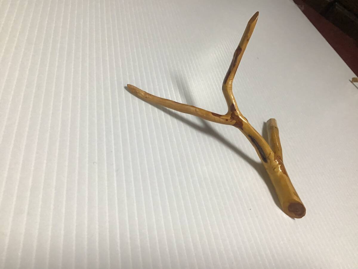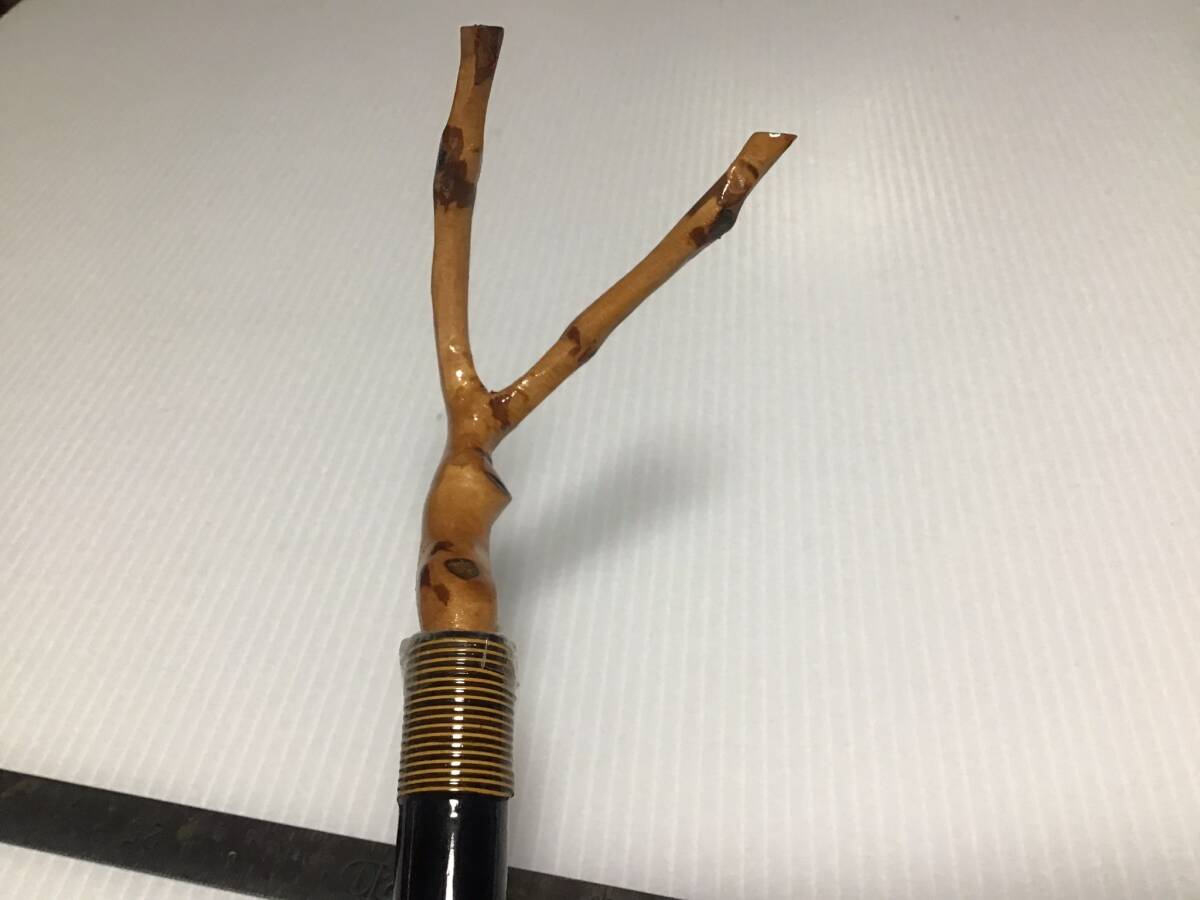 【 我が家の柘植の木から採取した物を5年乾燥して竿枕(竿頭)に仕上げた逸品でございます。ご覧のように柘植の枝の独特の形状がめっちゃ格好面白い竿枕になりました。 お気に召しましたらお買い上げよろしくお願いします。 】