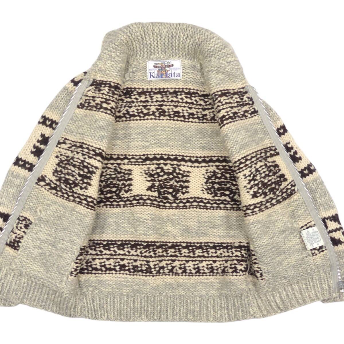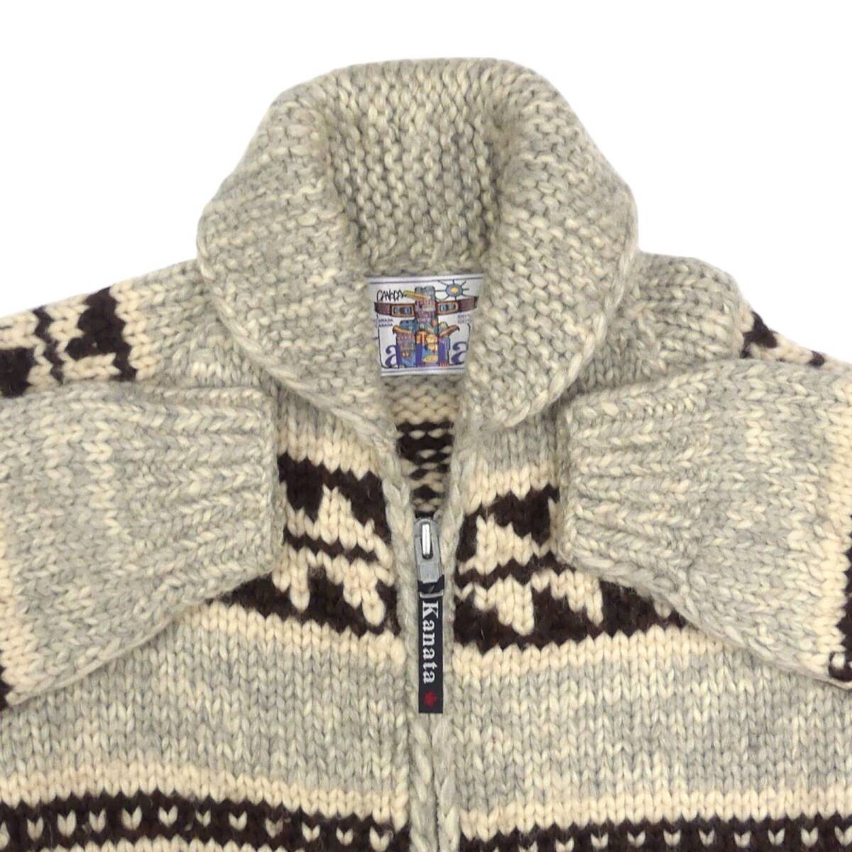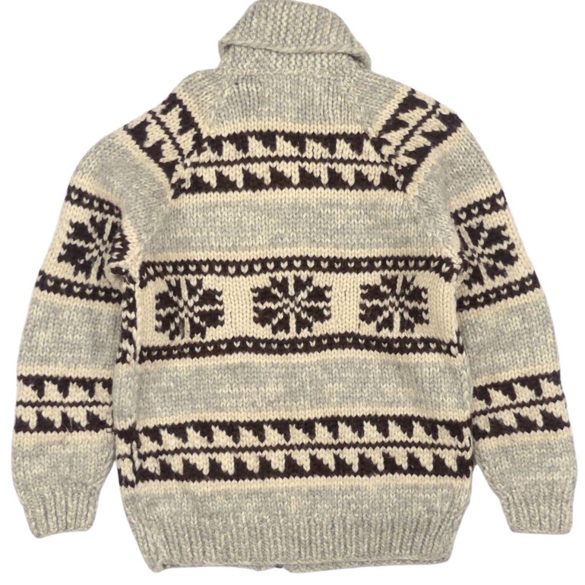 即決★カナダ製 KANATA★メンズ L位 カウチンセーター カナタ グレー 雪柄 ウール ハンドニット セーター カーディガン ジップアップ