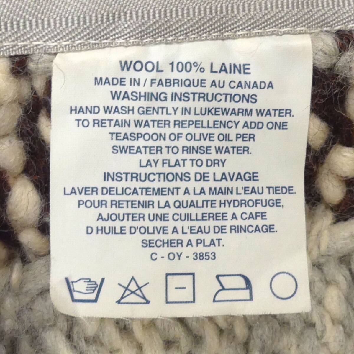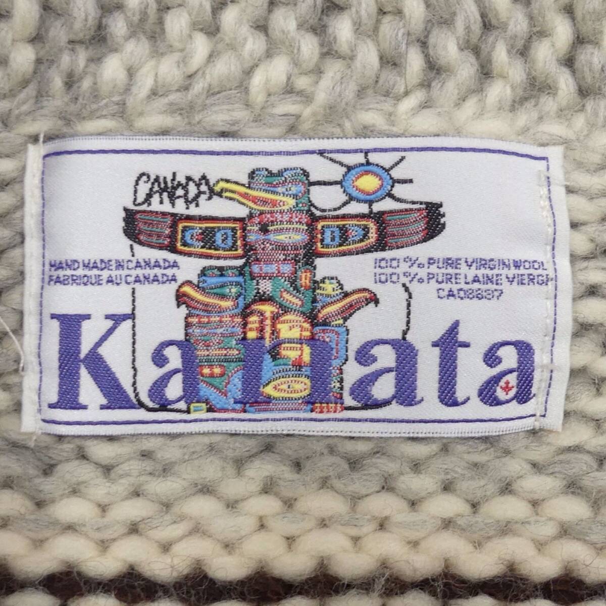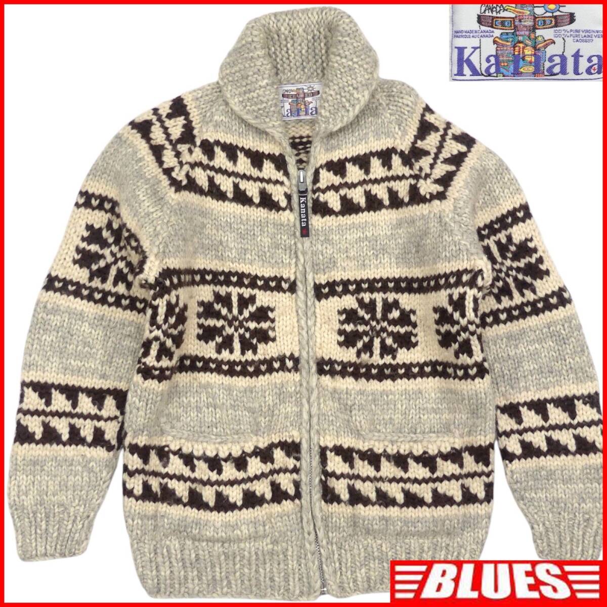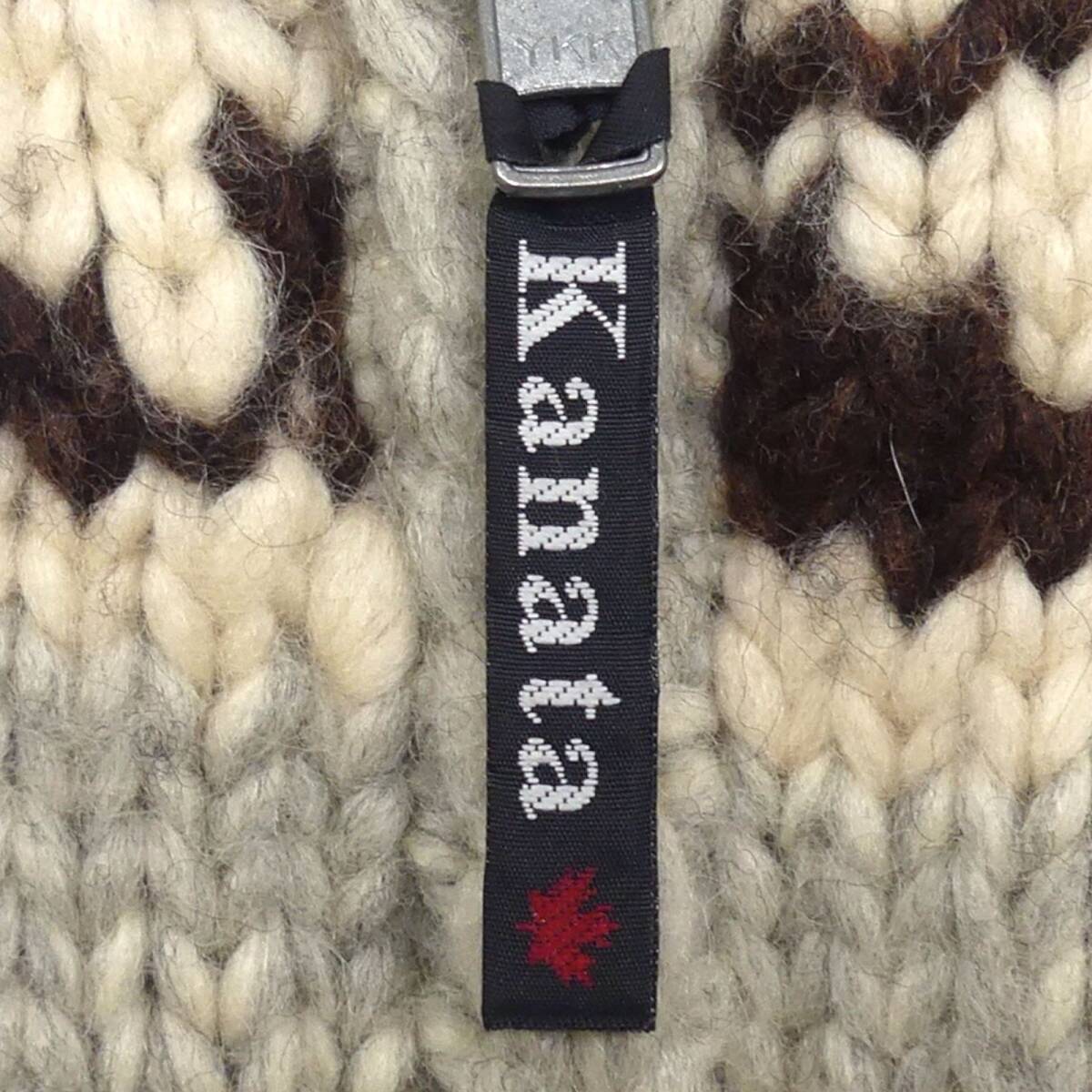 即決★カナダ製 KANATA★メンズ L位 カウチンセーター カナタ グレー 雪柄 ウール ハンドニット セーター カーディガン ジップアップ
