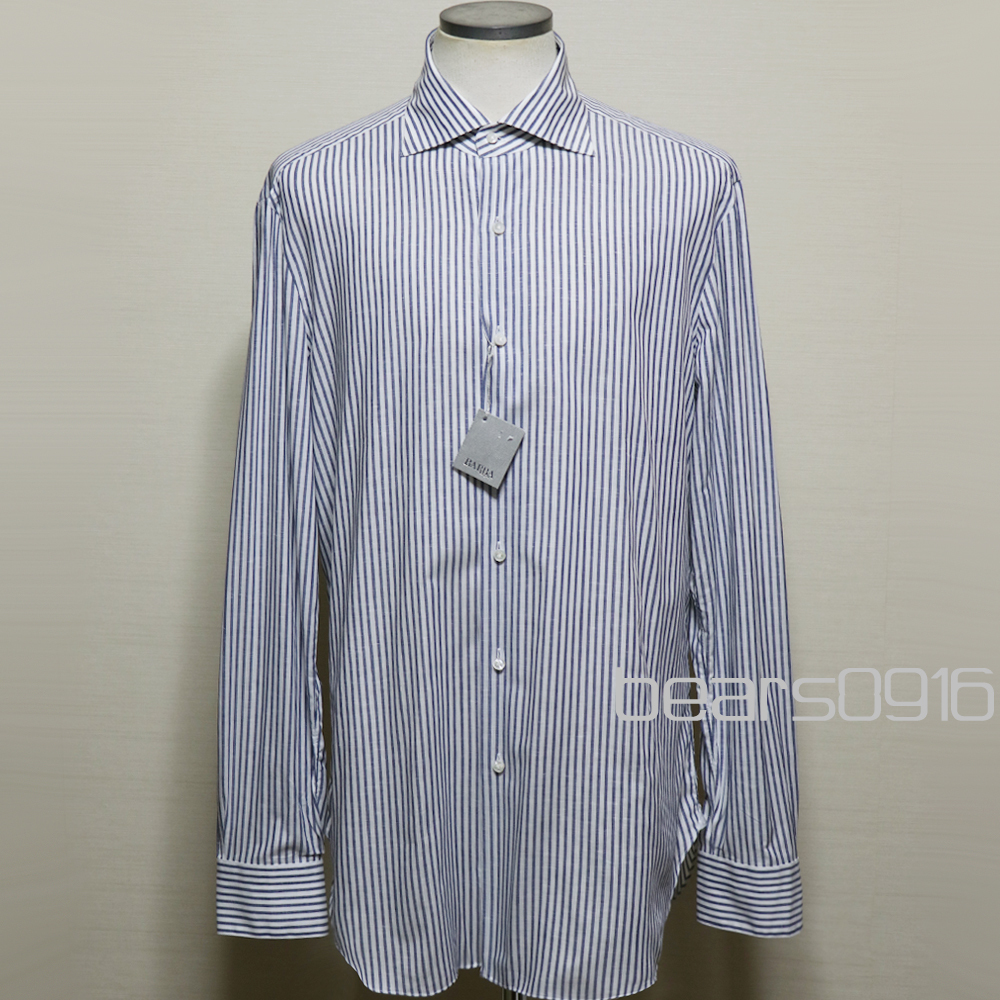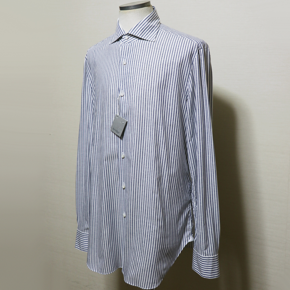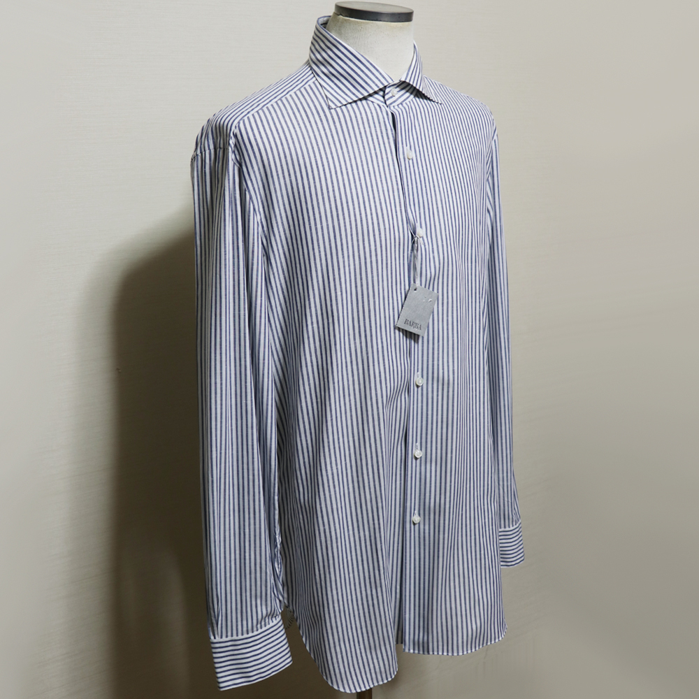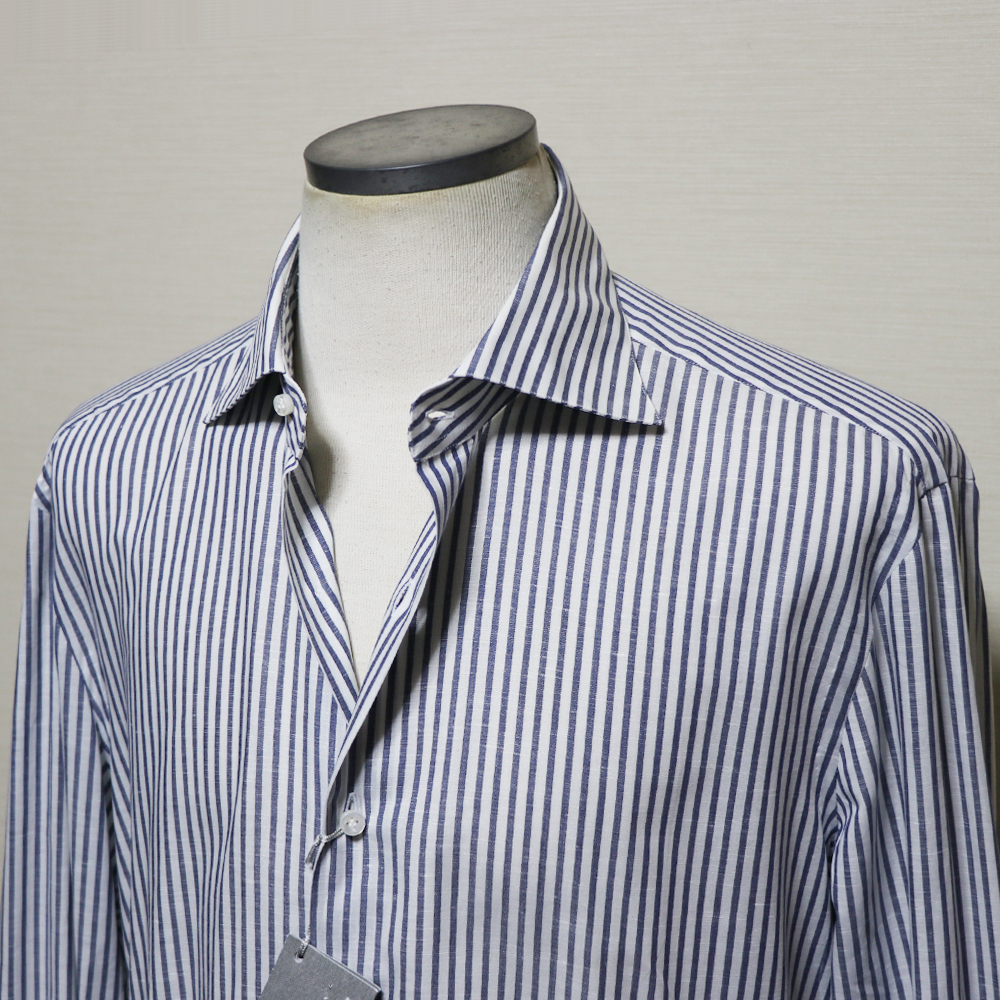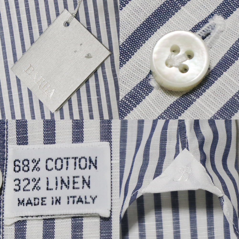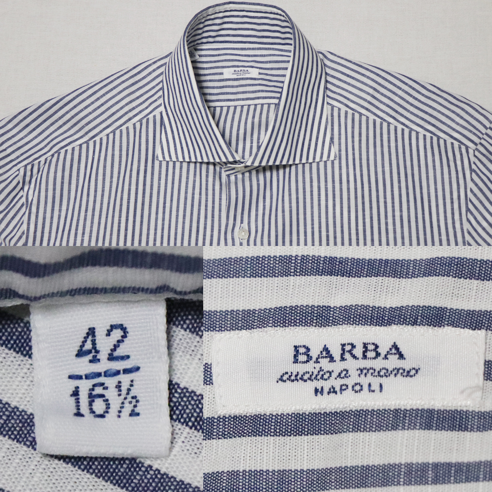 アメリカ購入 新品未使用品 MADE IN ITALY BARBA バルバ イタリアンリネン ワイドカラーシャツ 白×紺 42 16 1/2 サイズです。
