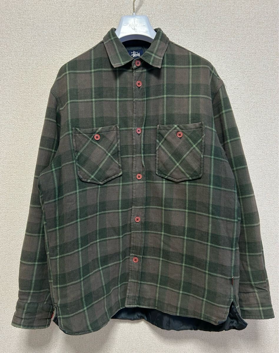 90's チェック柄長袖シャツ キルティングライナー 中綿ネルシャツ