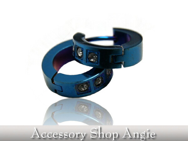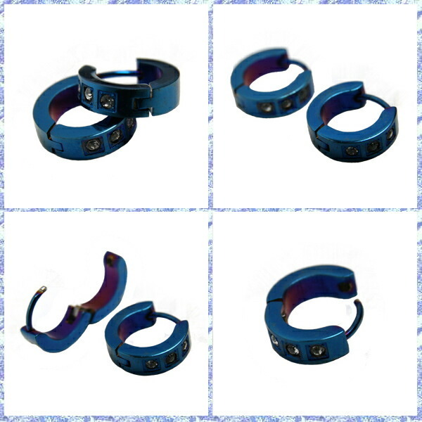 SH メンズ/レディース バラ売り ステンレスフープピアス ブルー ジルコニア3石 S