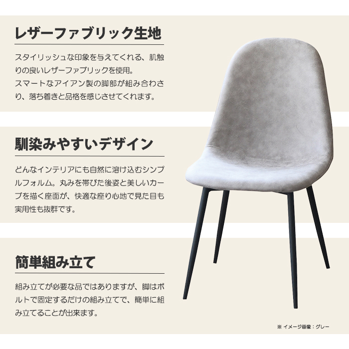 特  徴モダンとクラシックが交わる、レザーファブリック製のシンプルなダイニングチェア。