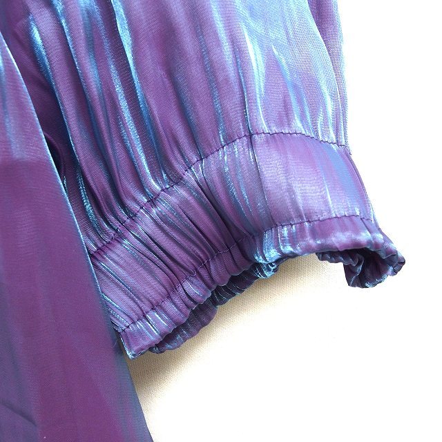 ザラ ベーシック ZARA BASIC シアー ブラウス オーロラ ボートネック ギャザー 半袖 S 紫 パープル /NT28 レディース