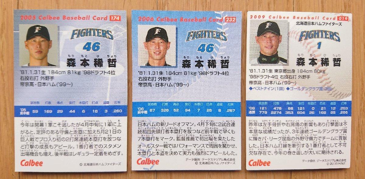 【カード・カルビー】森本稀哲 2005年174 / 2006年232 / 2009年019 計3枚セット 北海道日本ハムファイターズ カルビープロ野球チップス