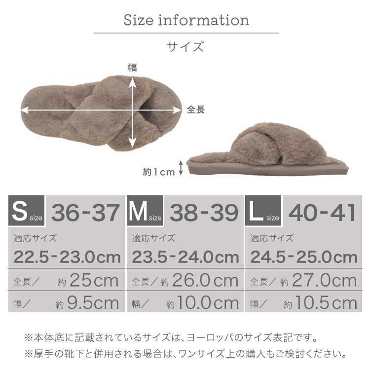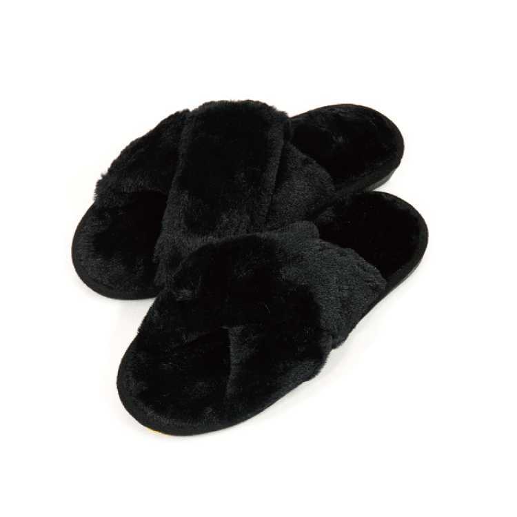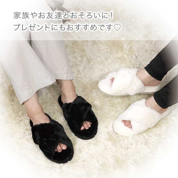 ルームシューズ ボアスリッパ ブラック Sサイズ もこもこ レディース あったか 温かい 来客用 サンダル スリッパ クロスデザイン