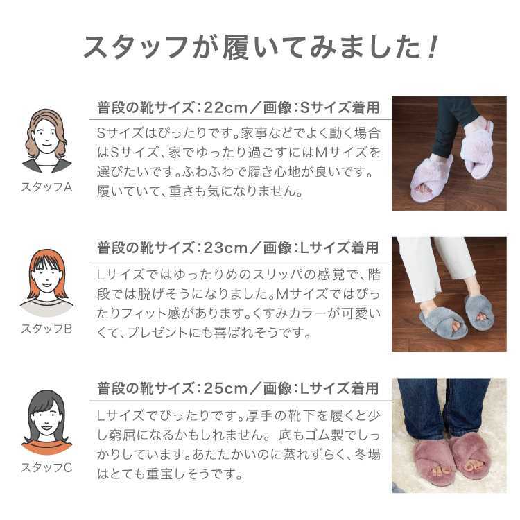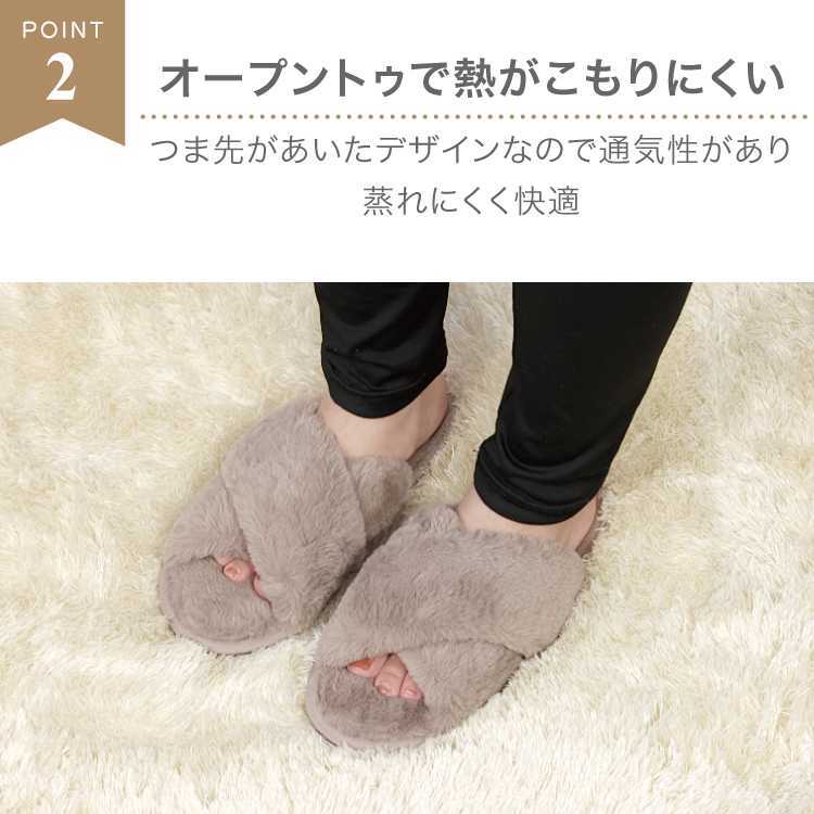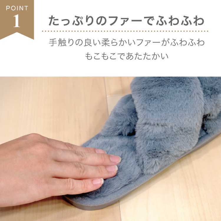 • 【特徴】・肌寒い季節に大活躍のふわふわボアスリッパです。・上品な毛足長めのファーで高見えします。・足に当たる全ての部分にたっぷりファーが使われているのでひんやり感や硬さを感じさせず優しい履き心地です。・つま先が開いたデザインなので通気性が良く、汗をかきやすいファー素材でも快適です。・おしゃれなクロスベルトが足の甲にフィットし暖かさをキープします。・滑りにくいゴムソールなのでフローリングでも安心です。・普段履きや来客用のスリッパとしてや参観日などの屋内履きとして活躍します。・ソール部分がゴム製なのでちょっとしたお出かけにもお使いいただけます。