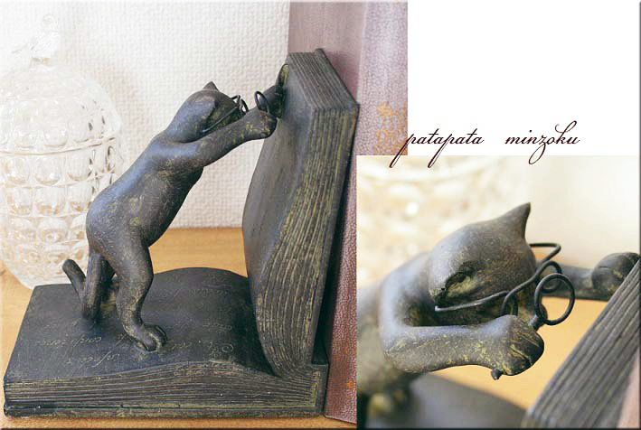個性的なモチーフとデザインのアンティーク調・ブックエンドです。