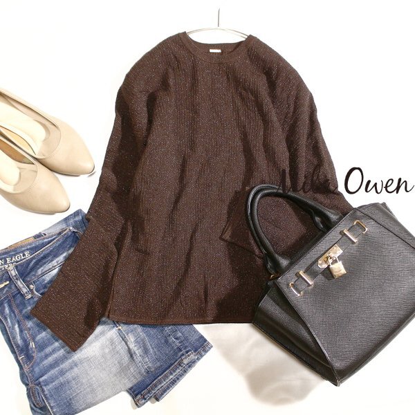美品 Mila Owen ミラ オーウェン 綺麗め リブストレッチ ニット プルオーバー 0号 春 秋 25D01
