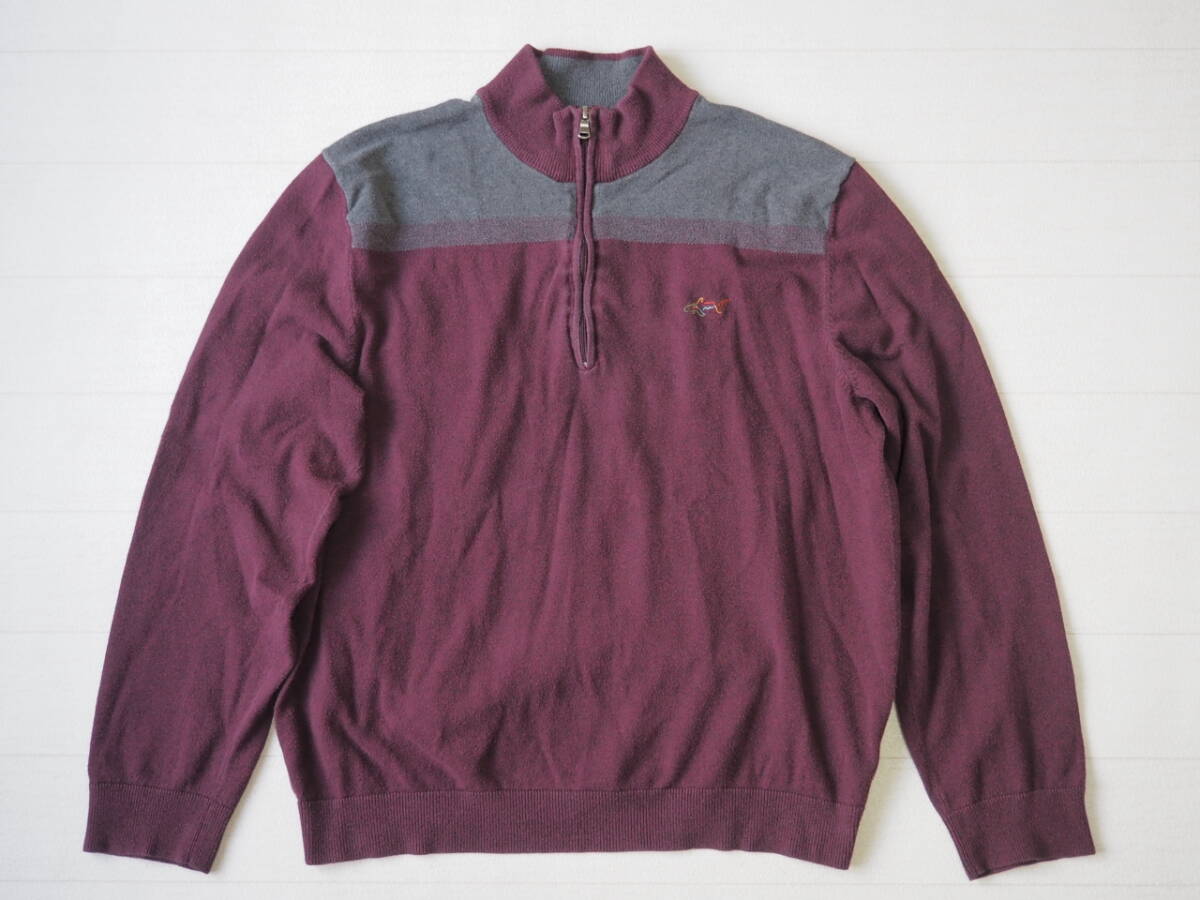 ☆送料無料☆ GREG NORMAN FOR Tasso Elba グレッグノーマン USA直輸入 古着 クォータージップ ロゴ プルオーバー メンズ L ボルドー 中古