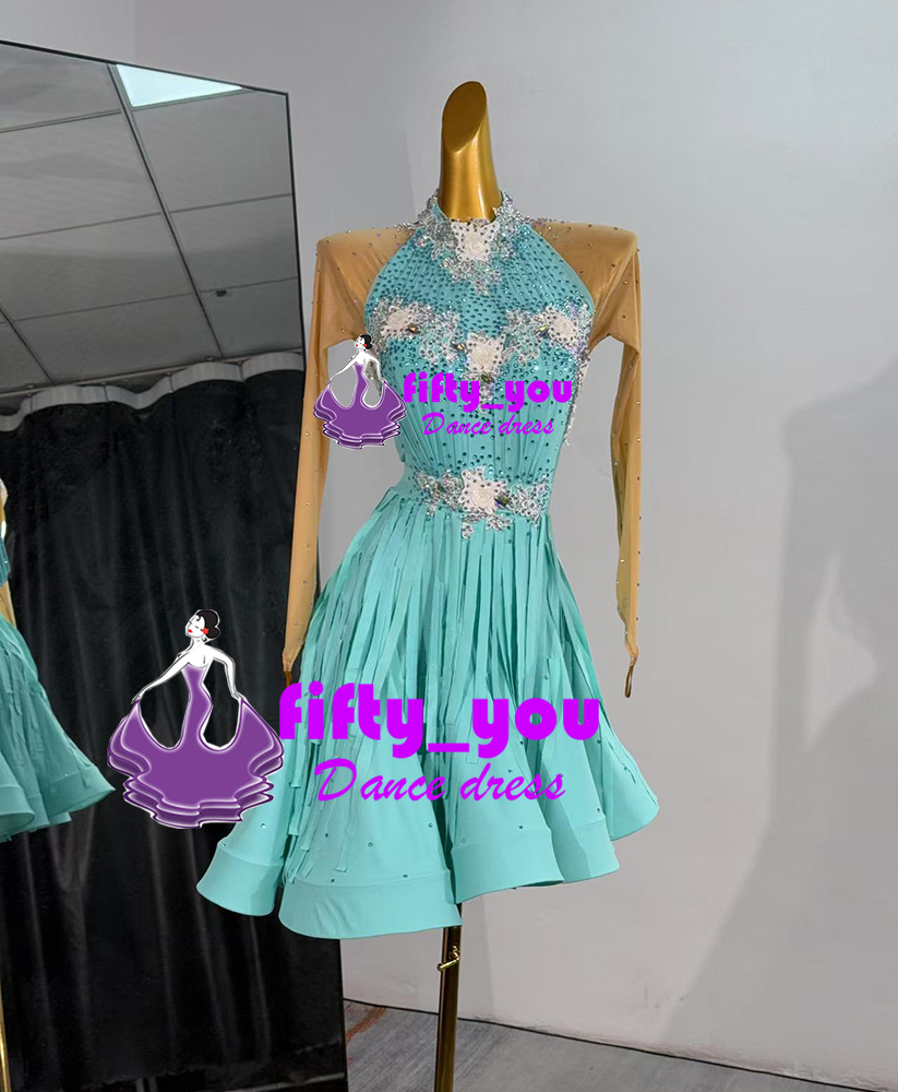 新品fifty_you レディース社交ダンスドレス  ラテン試合デモ用ドレス セミオーダー ストーン飾り お洒落デザイン 明るいカラー