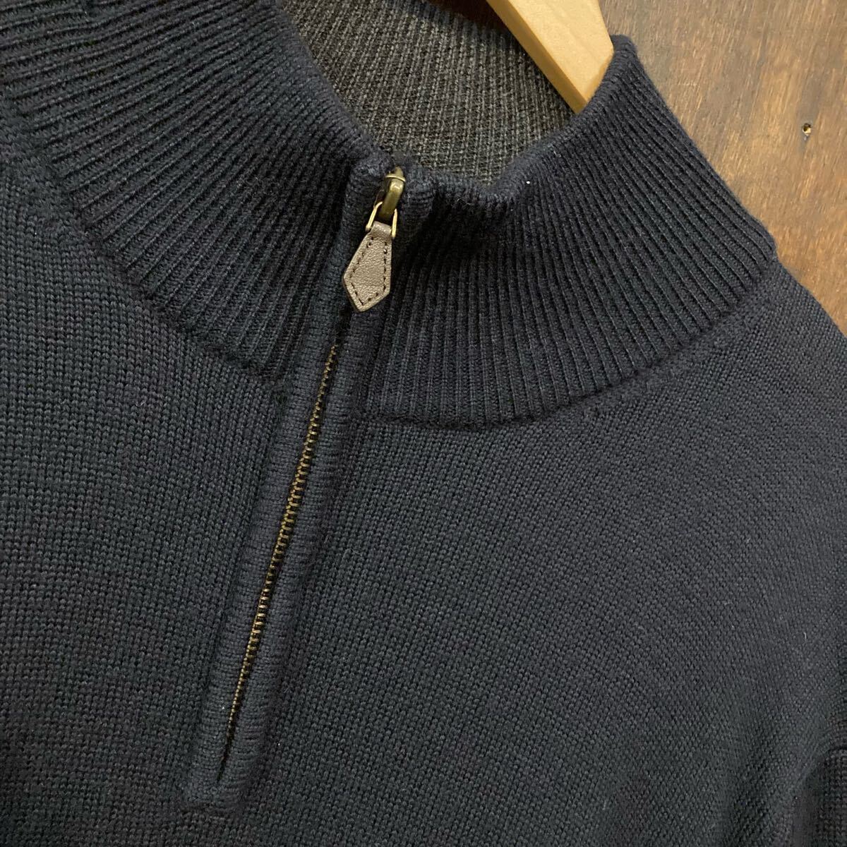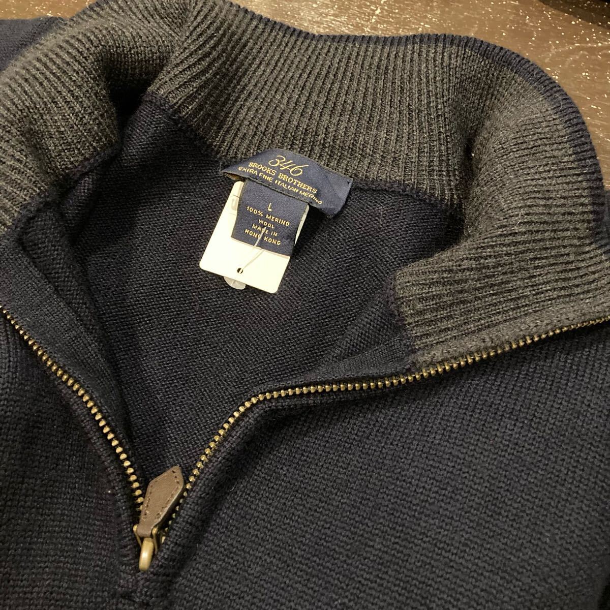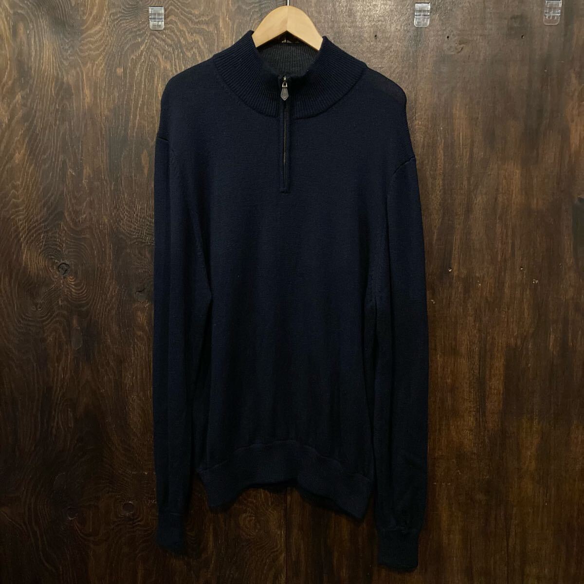 Brooks Brothers ハーフジップ モックネックセーター 紺 ニット Lサイズ アメリカ古着です。