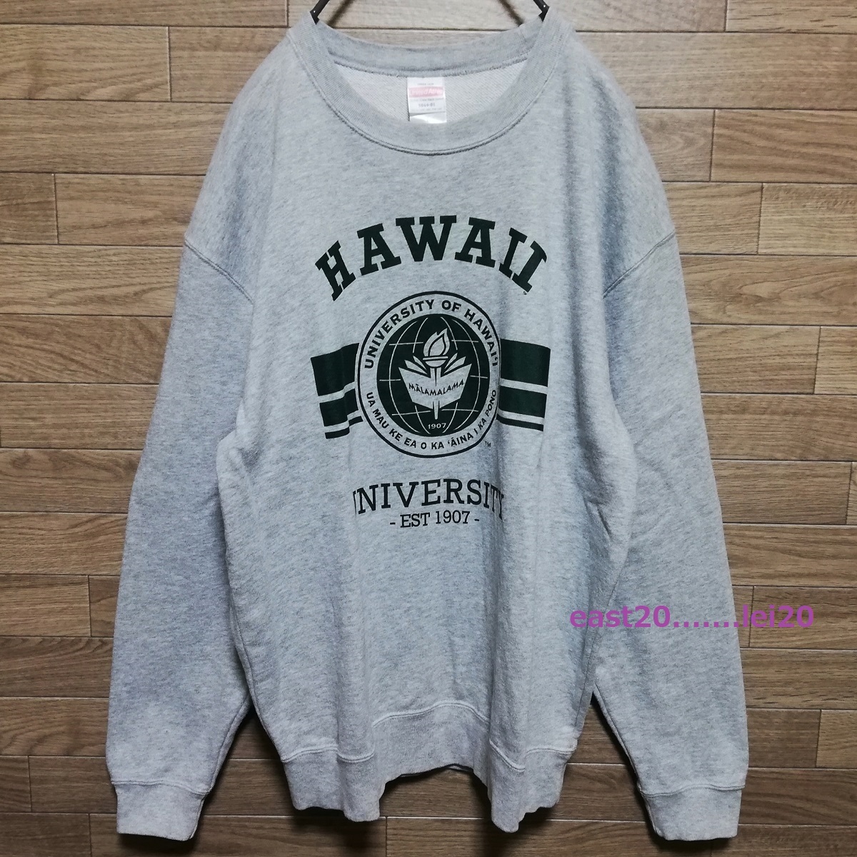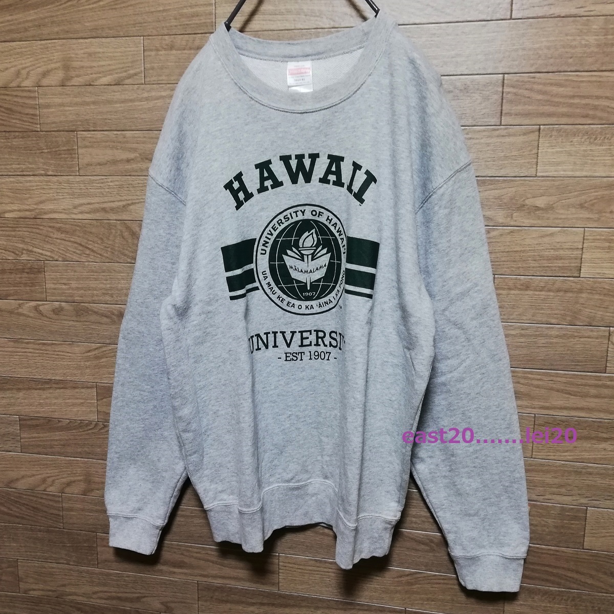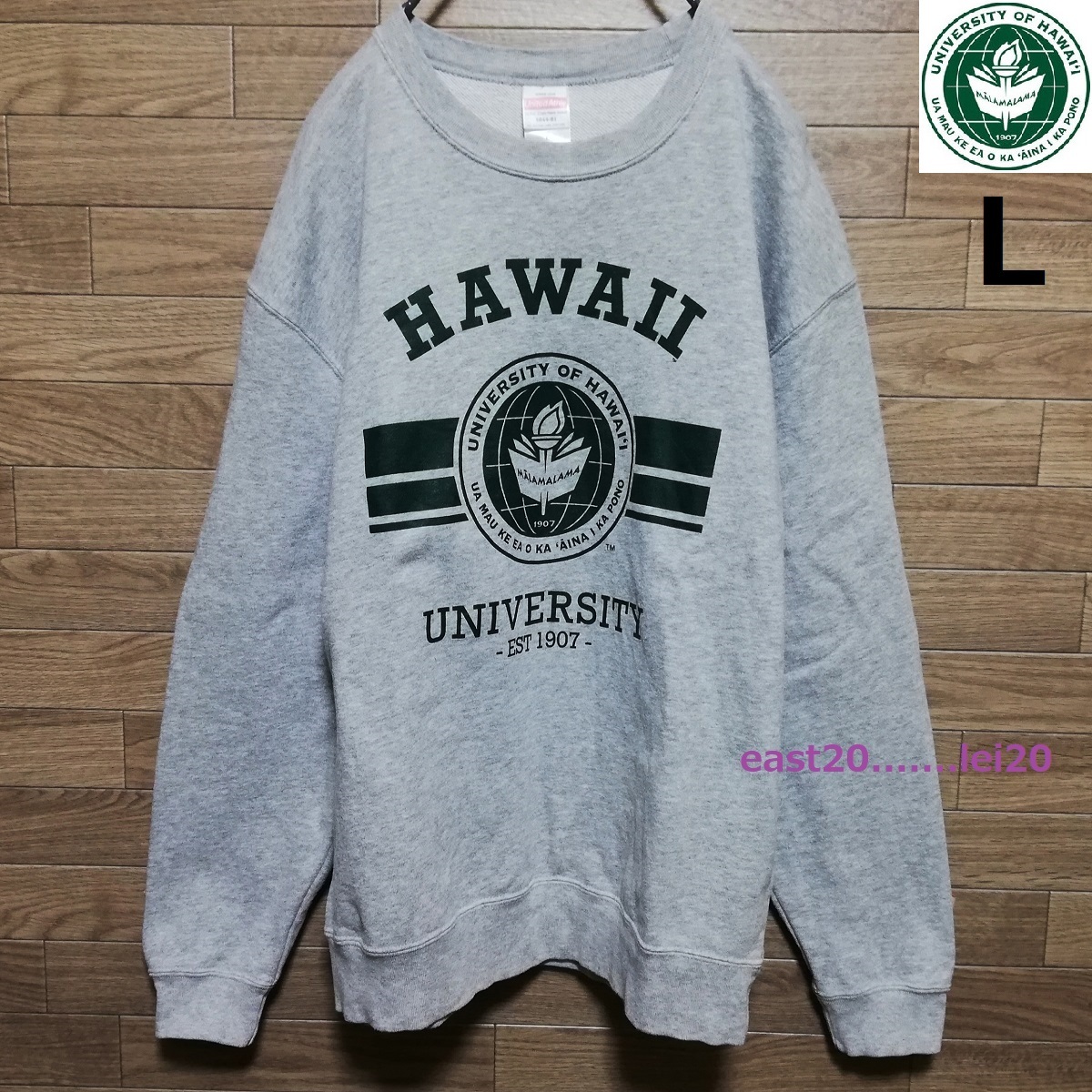 UNIVERSITY OF HAWAII ハワイ大学 ロゴ プリント メンズ ウェア カレッジ スウェット クルー トレーナー L size グレー 美品 送料無料