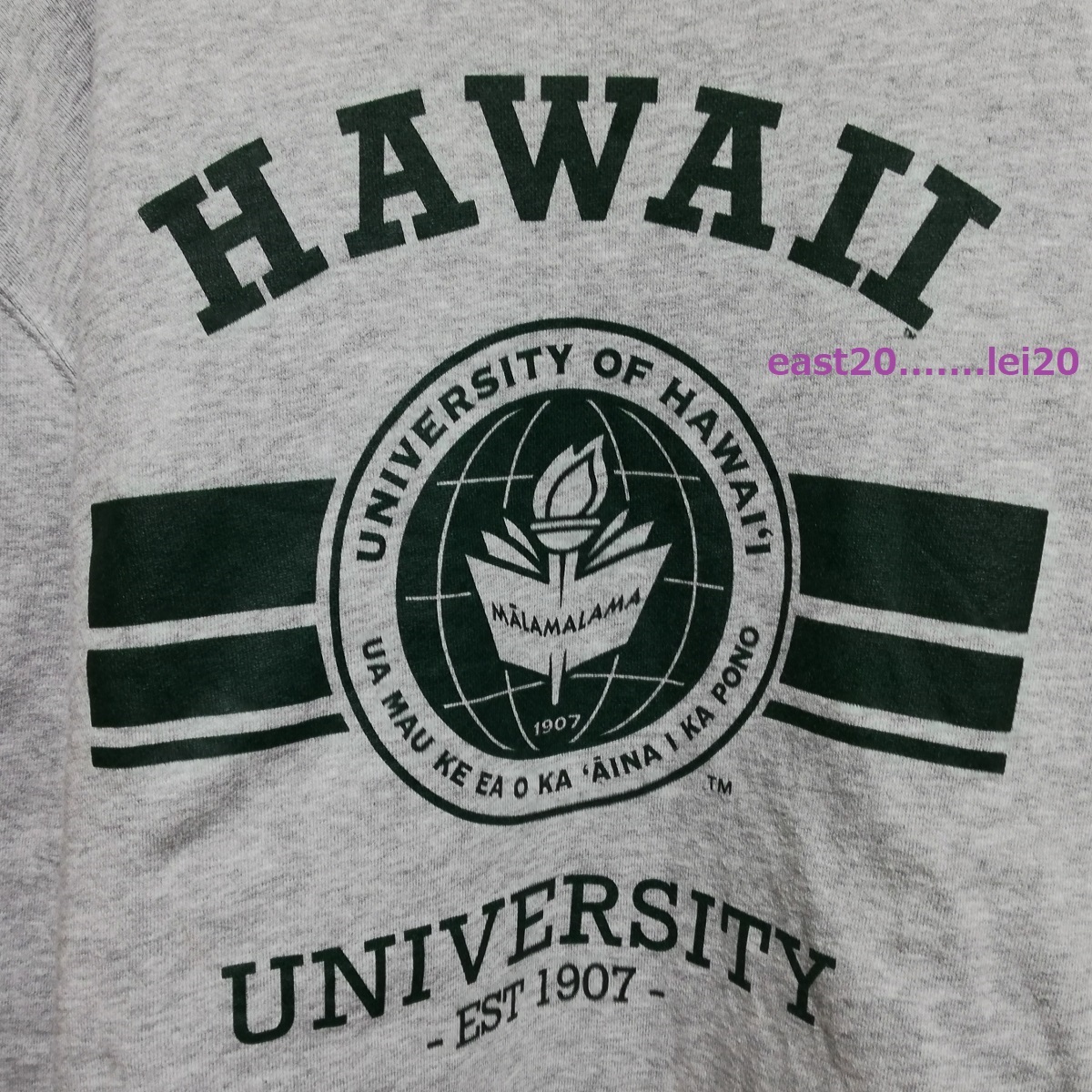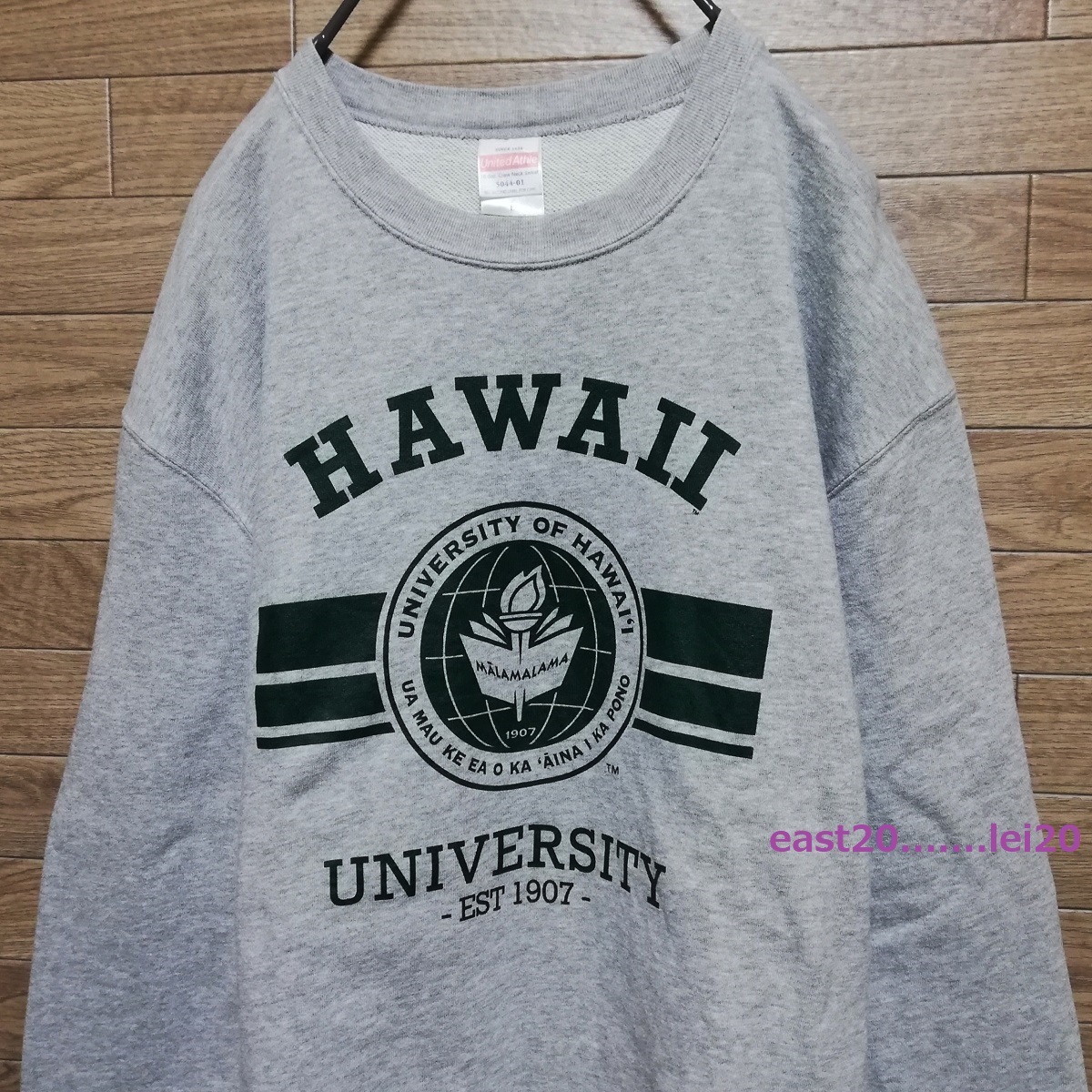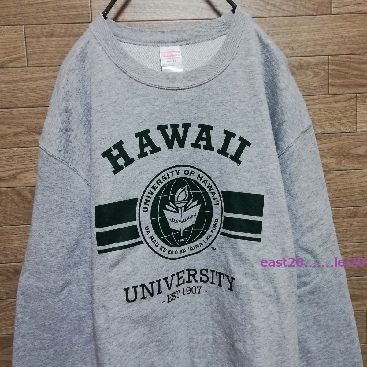 UNIVERSITY OF HAWAII ハワイ大学 ロゴ プリント メンズ ウェア カレッジ スウェット クルー トレーナー L size グレー 美品 送料無料