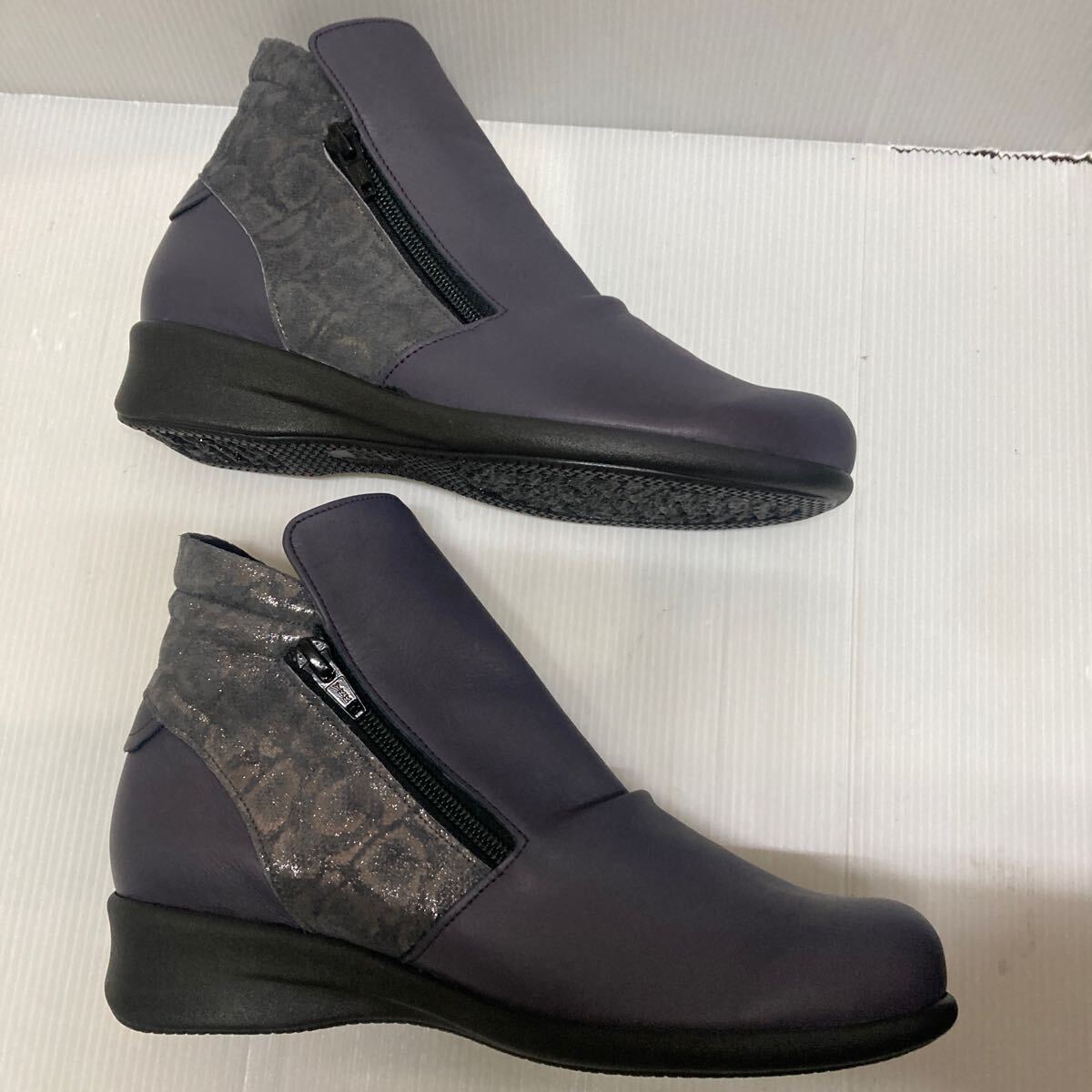 ★お買い得!★プリンセスユキ ショートブーツ PY0214 パープル 24.0㎝ 幅EEE 日本製 両側にファスナー付きで脱ぎ履き簡単
