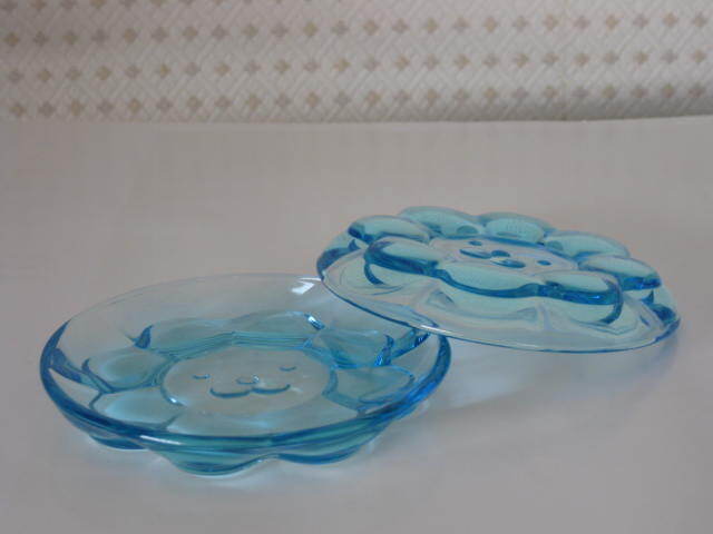 ミスド ポンデリング フェイス 皿 2枚 セット◆ミスタードーナツ ミニプレート お皿 ガラス 製 スケルトンブルー