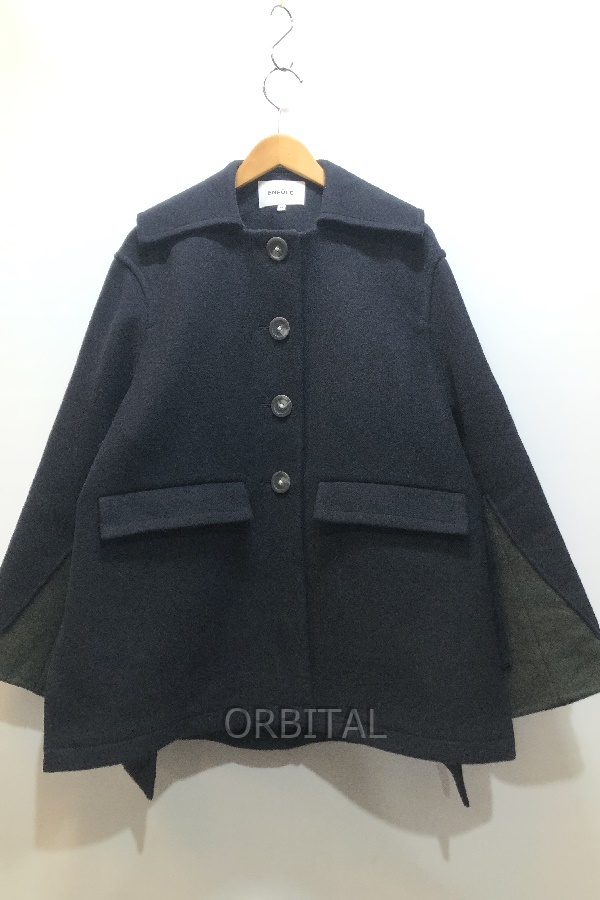 経堂) エンフォルド ENFOLD メルトン スクエアカラー BOX コート 300FA130-0870 サイズ38 定価8.2万位 ネイビー