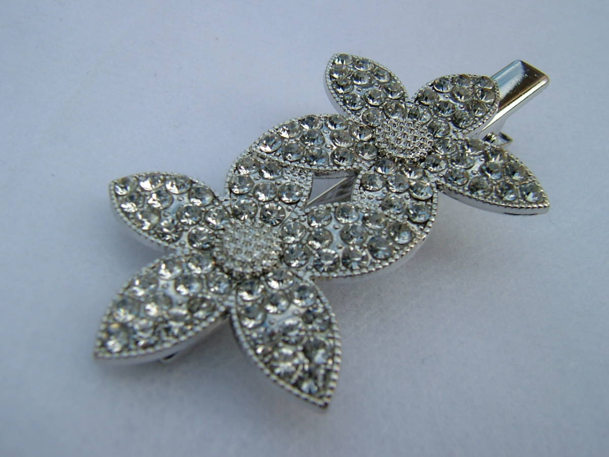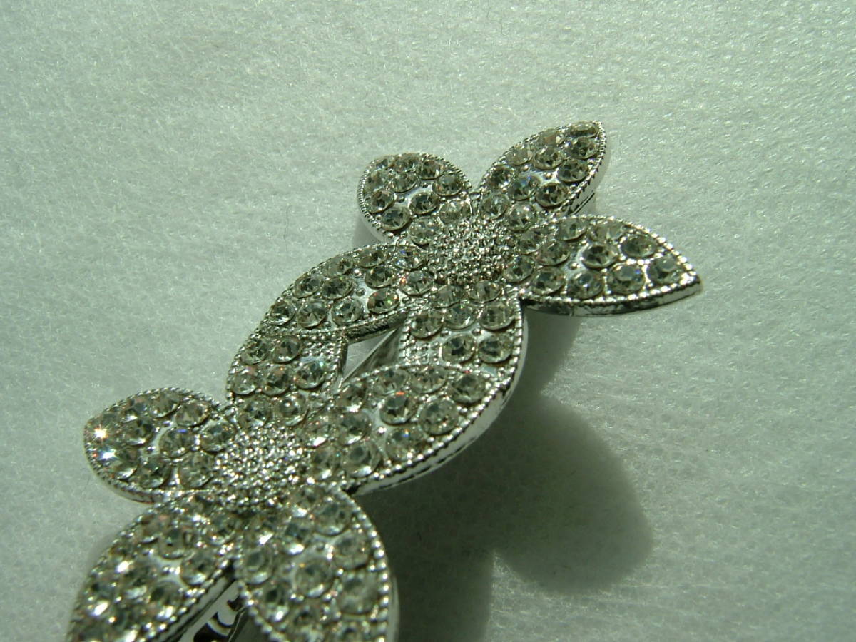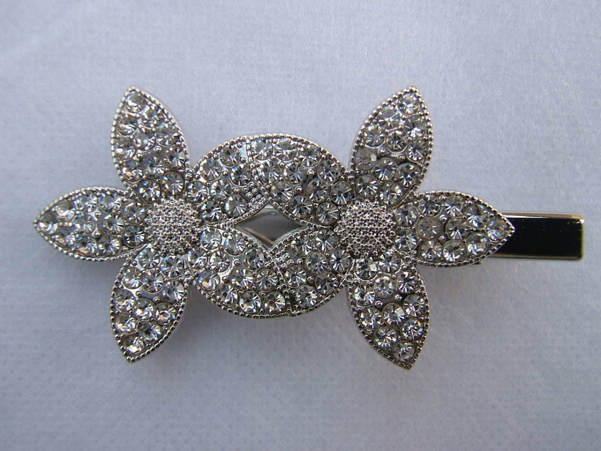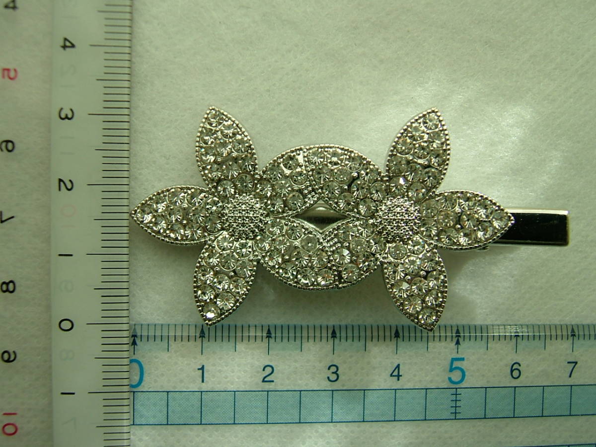 ラインストーンフラワーヘアクリップ シルバー ストールクリップ