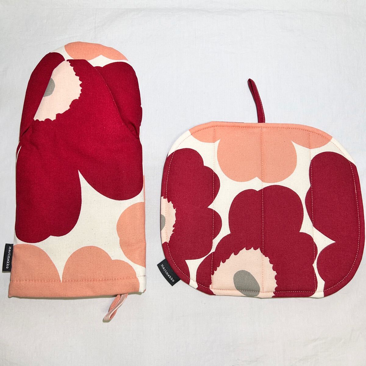 ★未使用品★ marimmeko Pieni Unikko ミトン&ポットホルダー 定価8250 花柄 可愛らしい 鍋つかみ 鍋敷き (02097E
