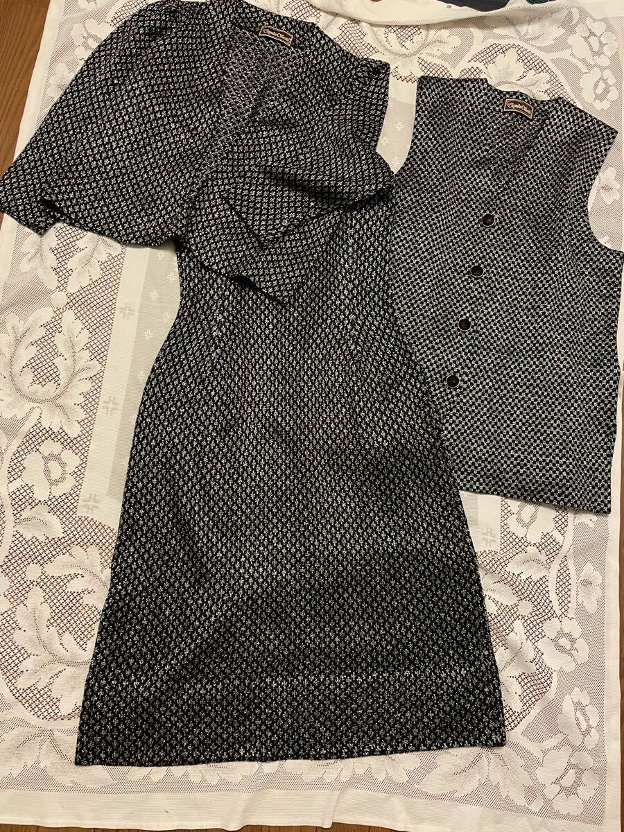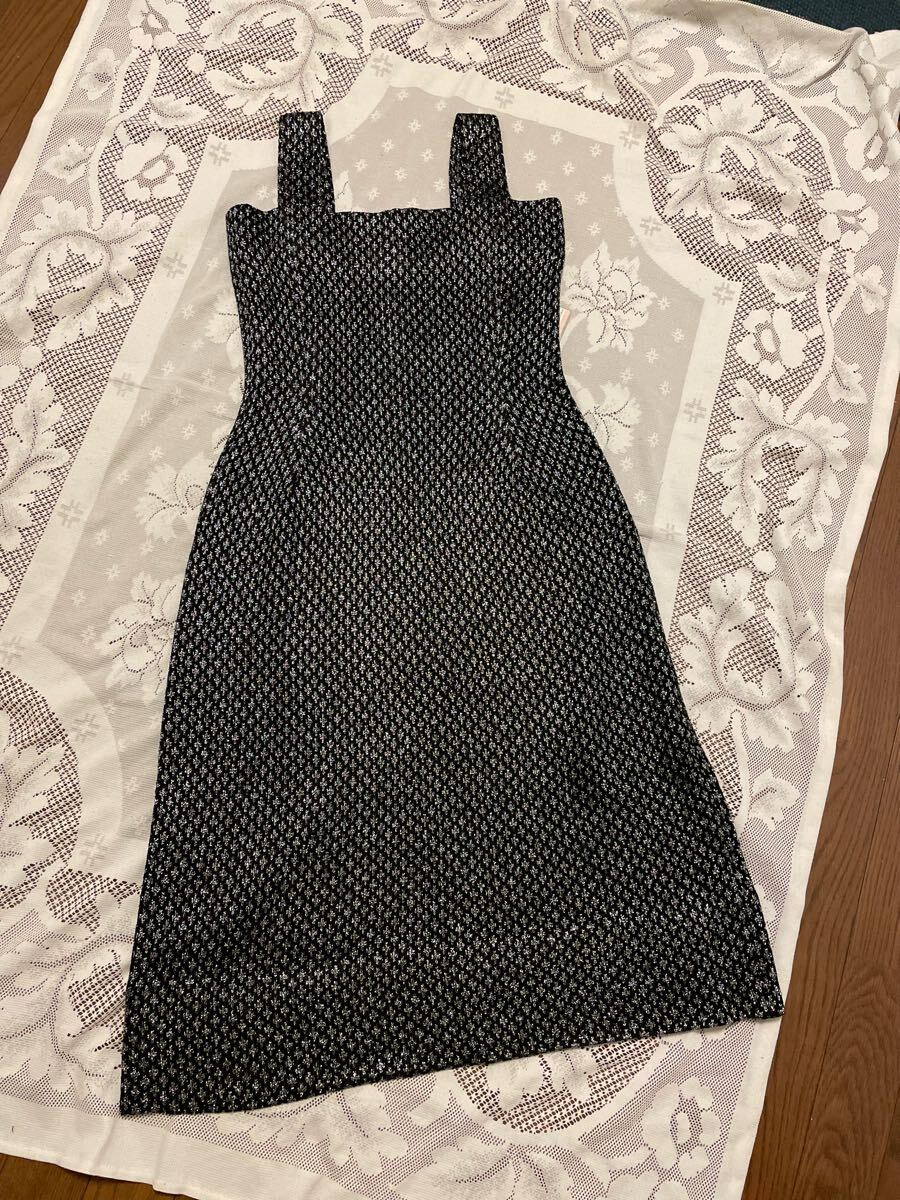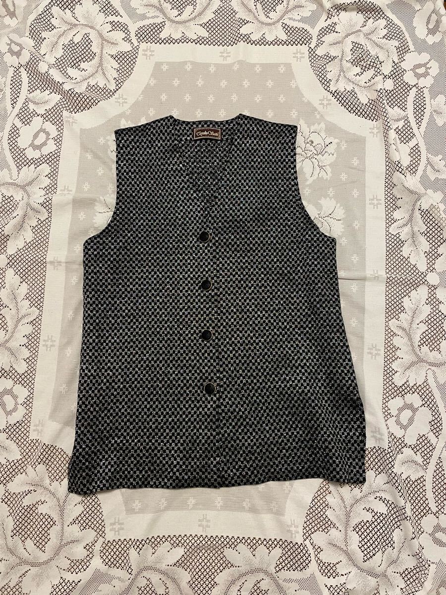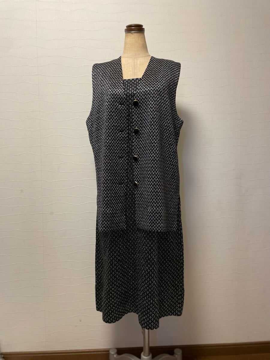 ・ブランド名:斉藤都世子 ・サイズ:表記ありませんので採寸寸法を参考にしてください ・素材:表記ありません ・平置実寸:ジャケット・・身幅50.5 肩幅33 袖丈48 着丈48.5 ベスト・・身幅52 肩幅38 総丈69 ワンピース・・総丈104(肩から) <素人採寸ですので多少の誤差はお許しください> ・USED(新品同様 1回着)・・ベスト。未使用・・ジャケット&ワンピース ・めだった汚れシミは無い様に思います。洗濯表示タグに少しシミがある箇所があります ・黒地にシルバー。手洗い可能です ・ジャケットは七分袖。ボタン等は無いです ・ベストはボタンが4つ。丈が長めですのでパンツにもよく合います。ワンピースは後ろファスナーです。美ラインです ※汚れシミなど出来る限りチェックしておりますが万一見落とし等ございましたらお許しください※ | |||
