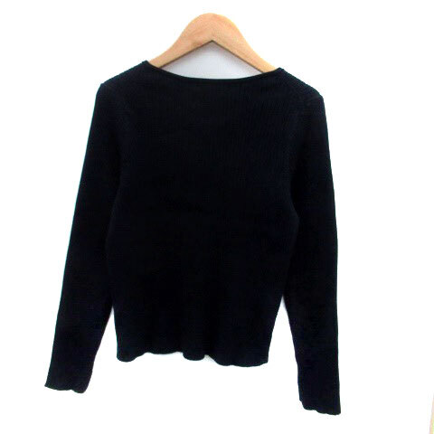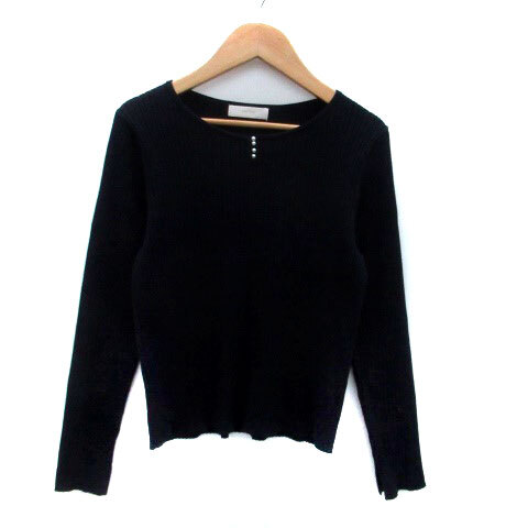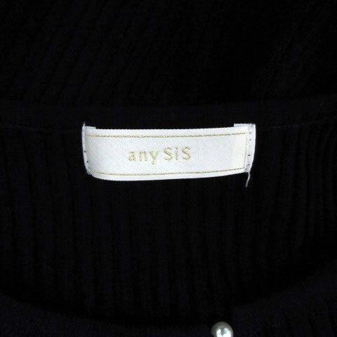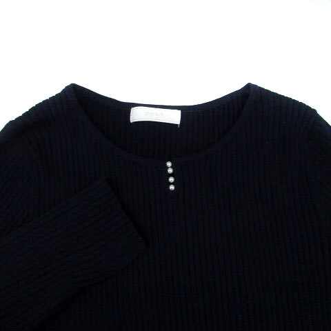 エニィスィス エニシス anySiS ニット カットソー リブ ラウンドネック 長袖 フェイクパール 2 M 紺 ネイビー /HO27 レディース