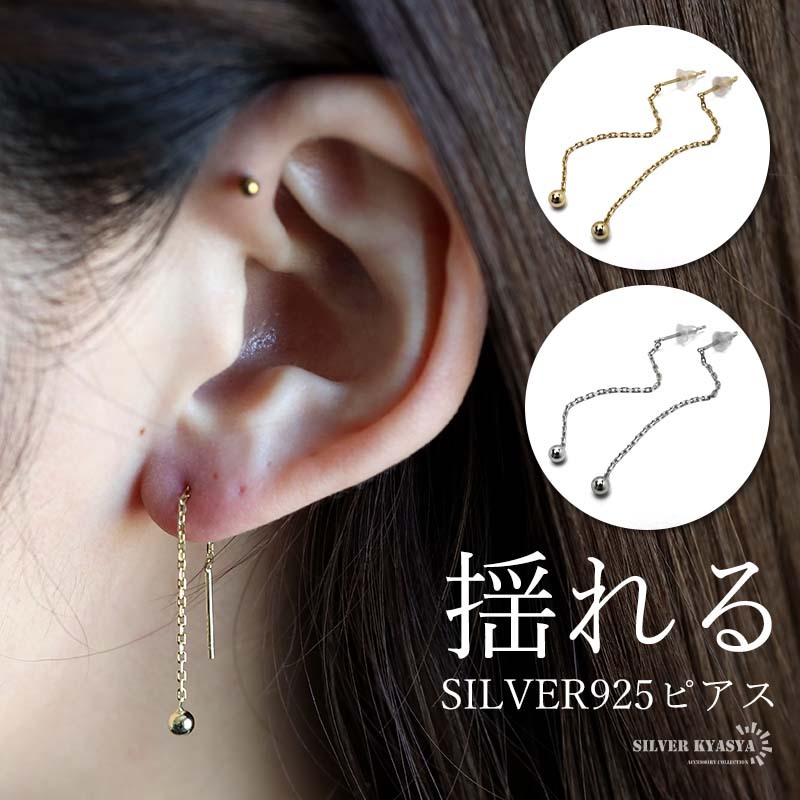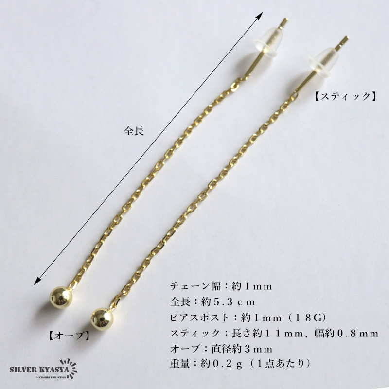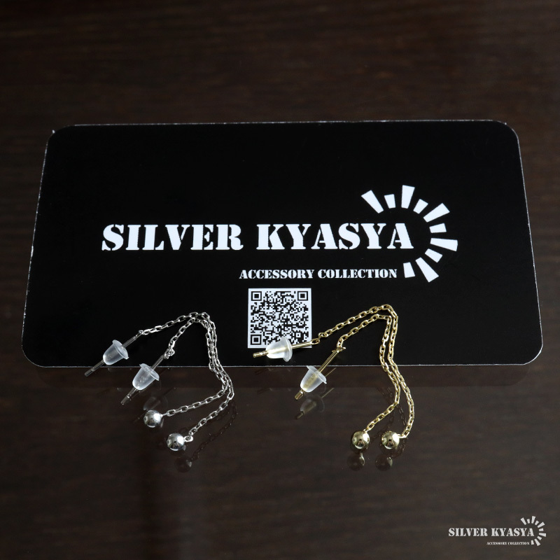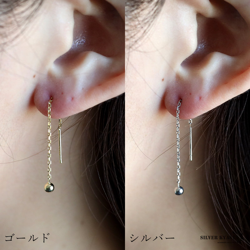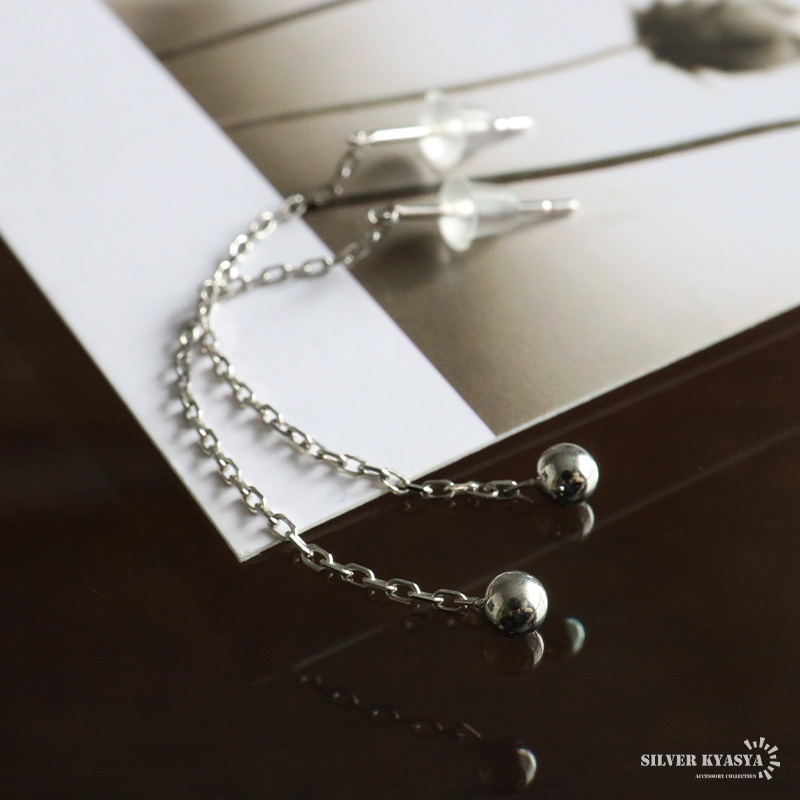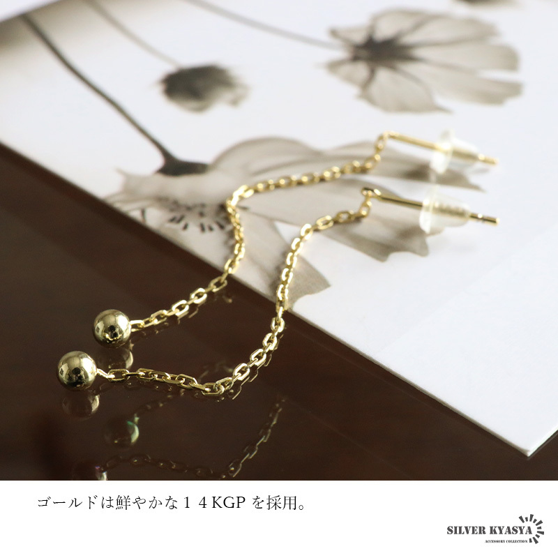先端にボールが付いた極細のチェーンピアス。揺れ動くチェーンが存在感を演出してくれます。シンプルな装いにもピッタリ◎お好みで前と後ろのチェーンの長さを変えるのも◎