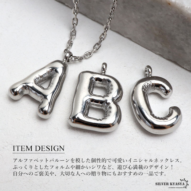 アルファベットバルーンを模した個性的で可愛いイニシャルネックレス。ぷっくりとしたフォルムや細かいシワなど、遊び心満載のデザイン!自分へのご褒美や、大切な人への贈り物にもおすすめの一品です。