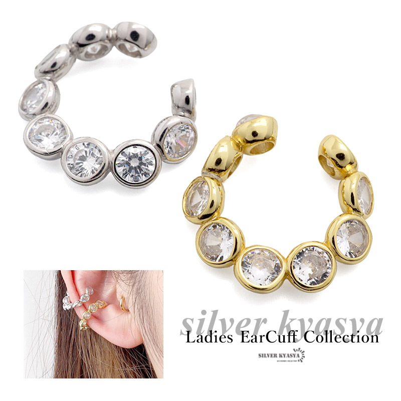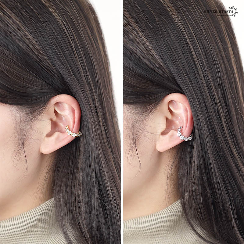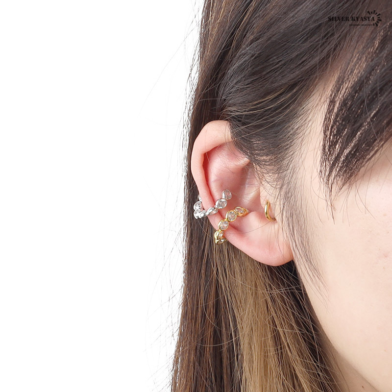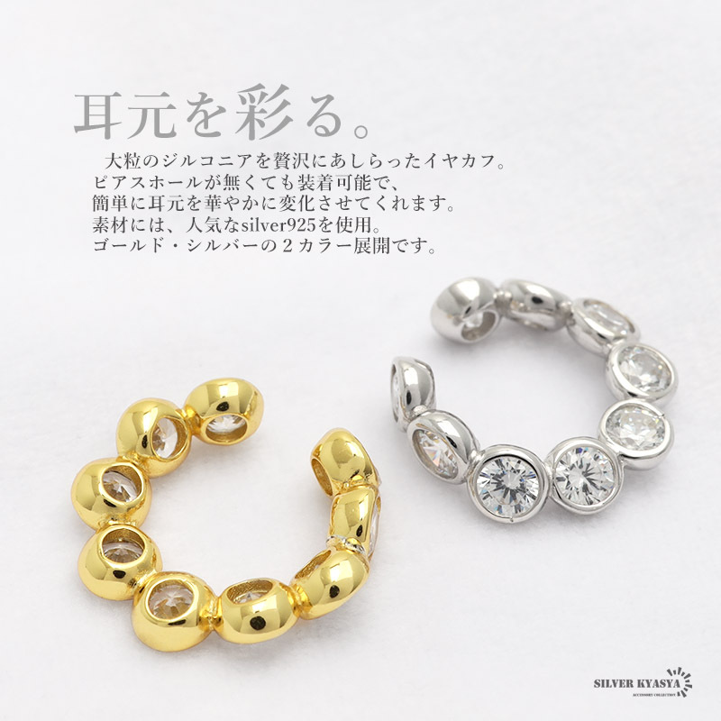 大粒のジルコニアを贅沢にあしらったイヤカフ。