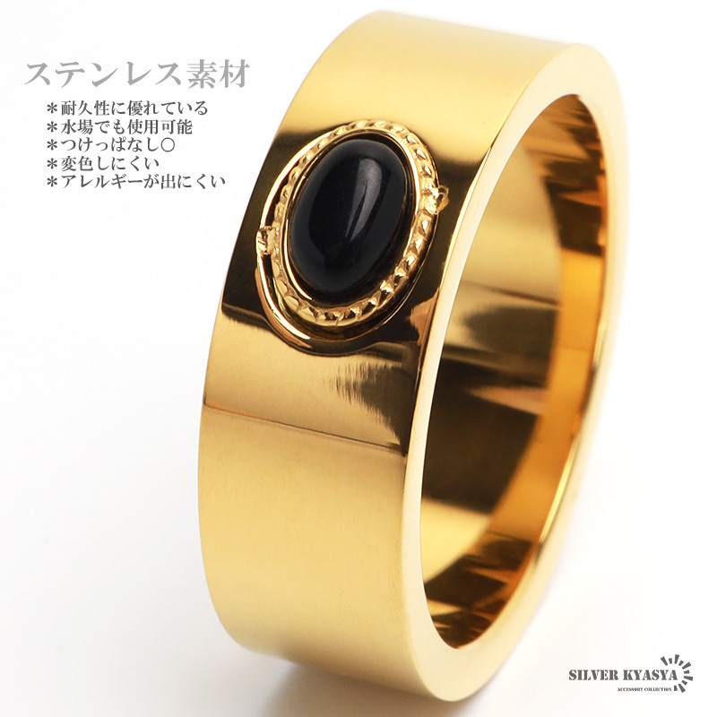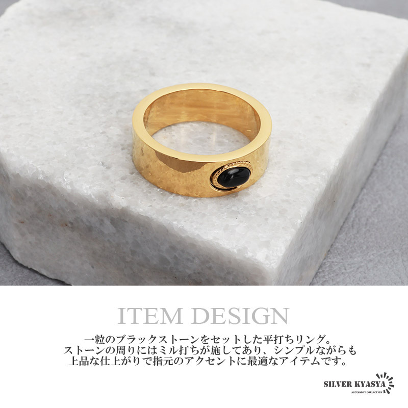 | 商品概要 | ■ITEM DETAIL 一粒のブラックストーンをセットした平打ちリング。ストーンの周りにはミル打ちが施してあり、シンプルながらも上品な仕上がりで指元のアクセントに最適なアイテムです。 ■ステンレス素材を使用 金属部分は頑丈なことで知られるステンレス素材を採用。耐久性はもちろん耐水性も高く水場での着用も可能。金属アレルギーも出にくいとされている金属です。 |
