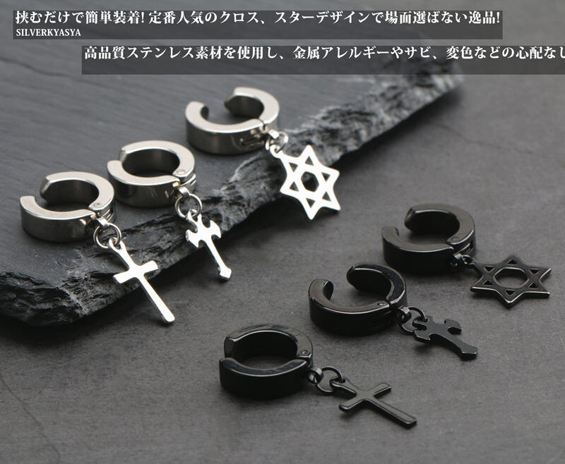 定番人気のクロス&スターデザインのイヤーカフ2カラーx3タイプ登場
