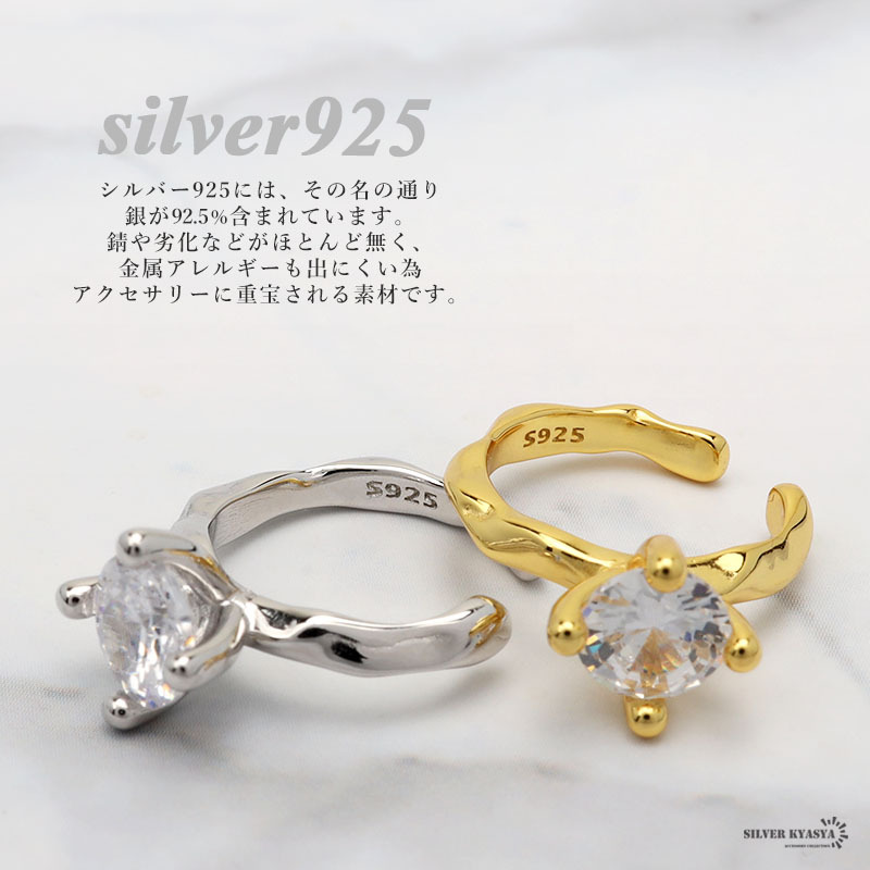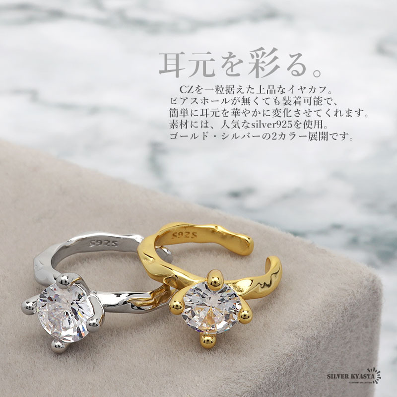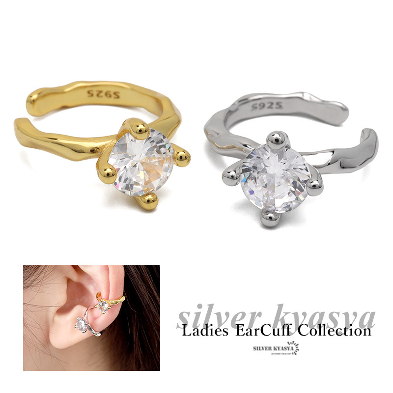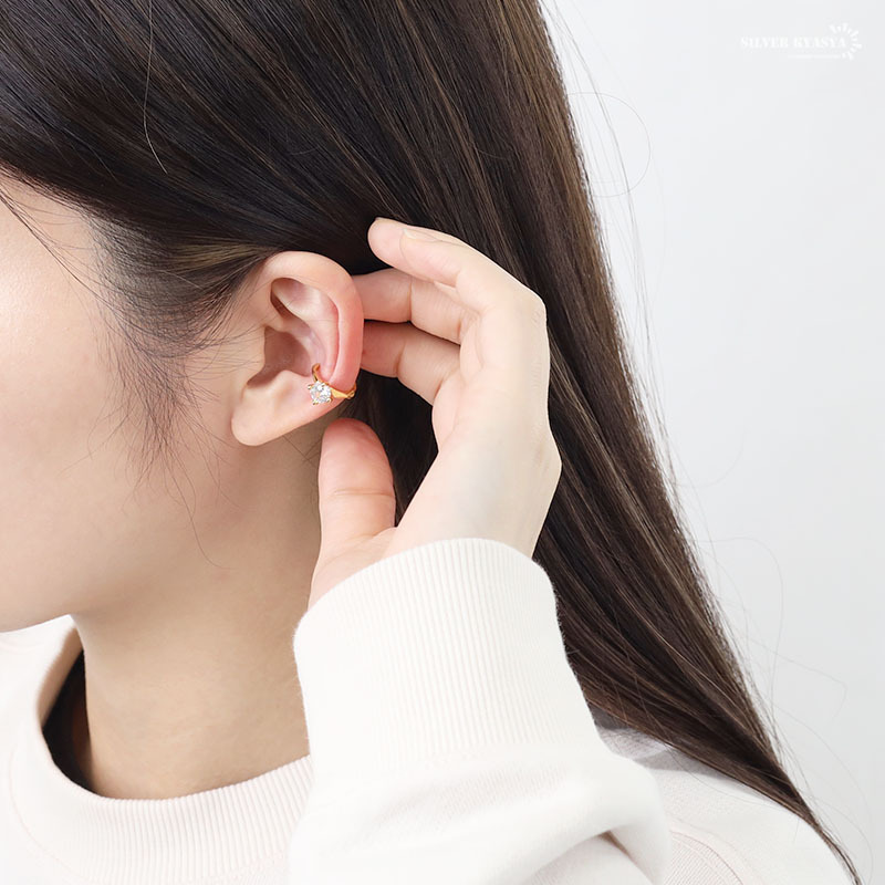 大粒のCZを一粒据えたラグジュアリーなイヤカフ。