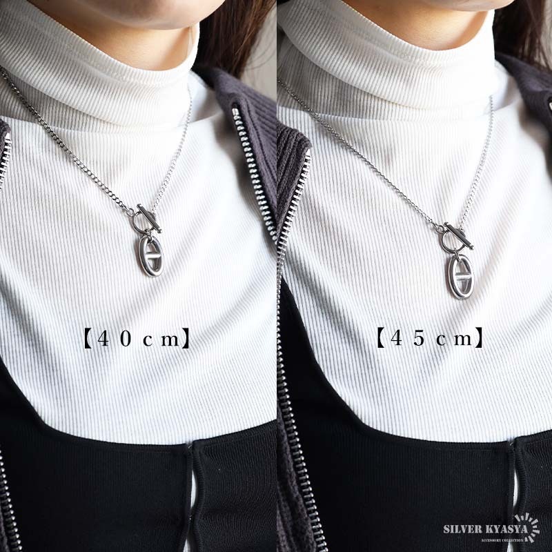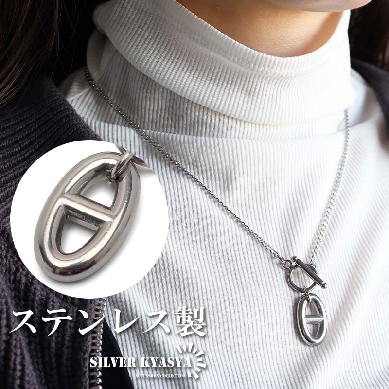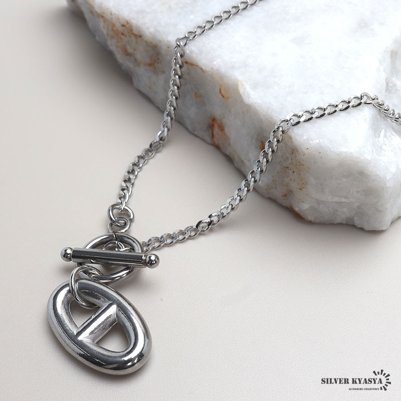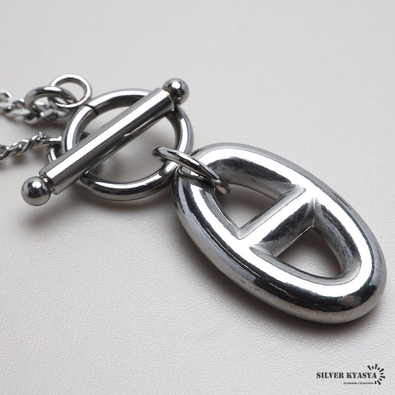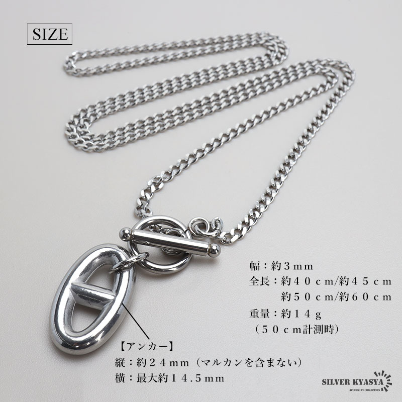 一コマのアンカーをセットしたネックレス。留め具は定番のマンテル仕様。首元のアクセントに最適で、コーディネートの主役として活躍するアイテム。