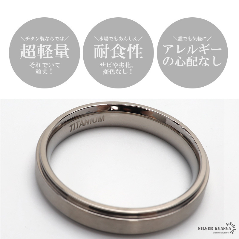| 商品概要 | ■定番人気のシンプルリング シャープなラインが美しい平打ちリング。シンプルなフォルムに両サイドの艶が、さりげないお洒落を演出。普段使いや重ね付けにピッタリ。 ■チタニウム素材 チタニウム(チタン)は耐食性が高く、汗などの水分に強い金属。そのため変色が無く、お手入れが不要!レジャーシーン等にも心強い味方です。 |