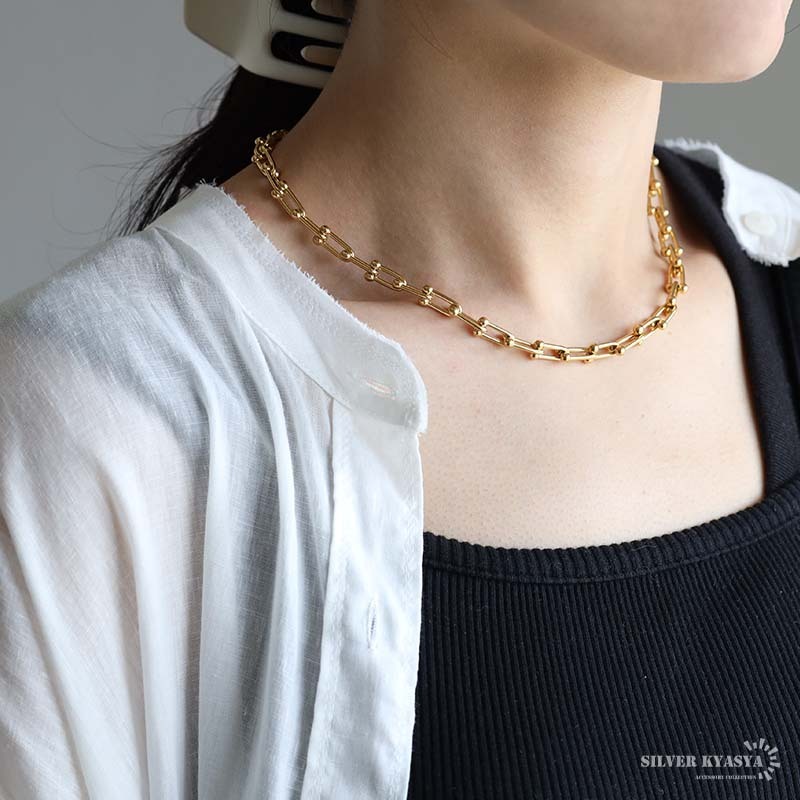 | 商品概要 | ■ITEM DESIGN 透かしがあり、軽やかな見た目が印象的なUチェーンを使用したネックレス。つけ心地が軽やかで、首元に印象を与えてくれる。ファッションに取り入れやすいアイテム。 ■ステンレス素材を使用 金属部分は頑丈なことで知られるステンレス素材を採用。耐久性はもちろん耐水性も高く水場での着用も可能。金属アレルギーも出にくいとされている金属です。 |