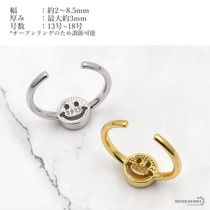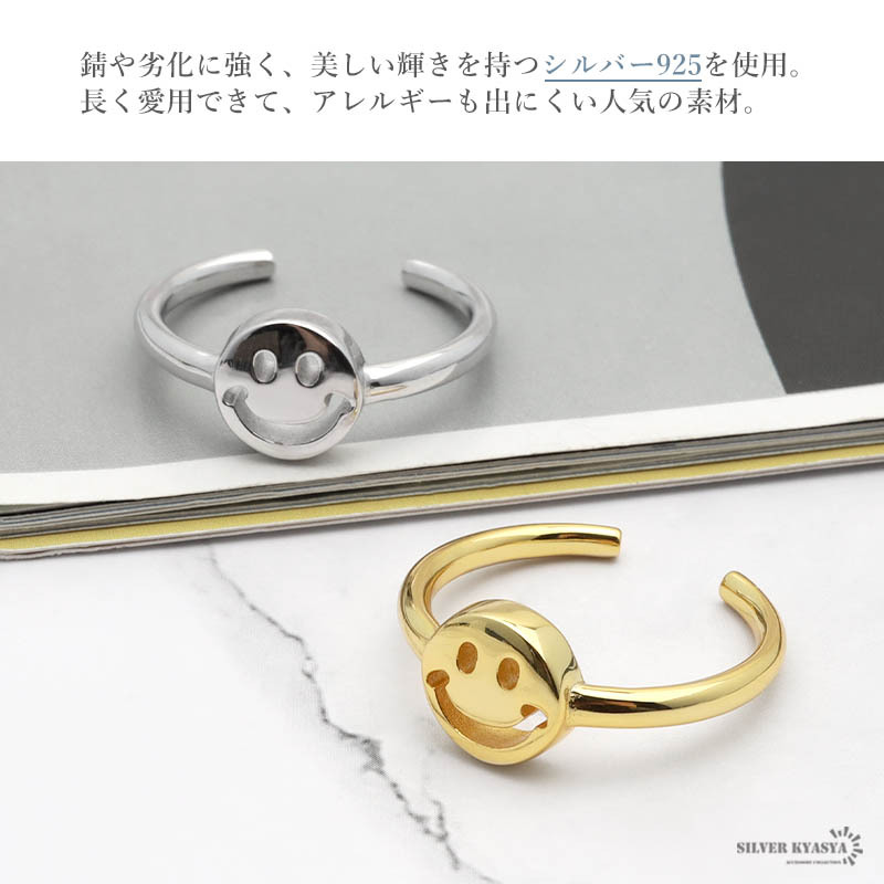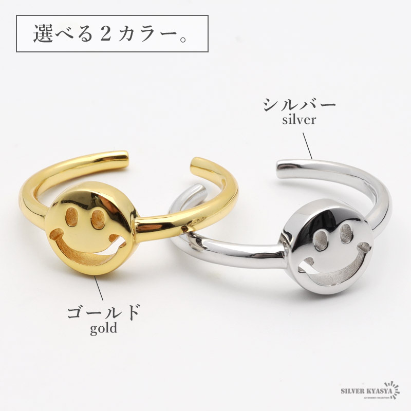 つるっとしたシンプルなモチーフリング。スマイリーフェイスがアクセントになってくれます。