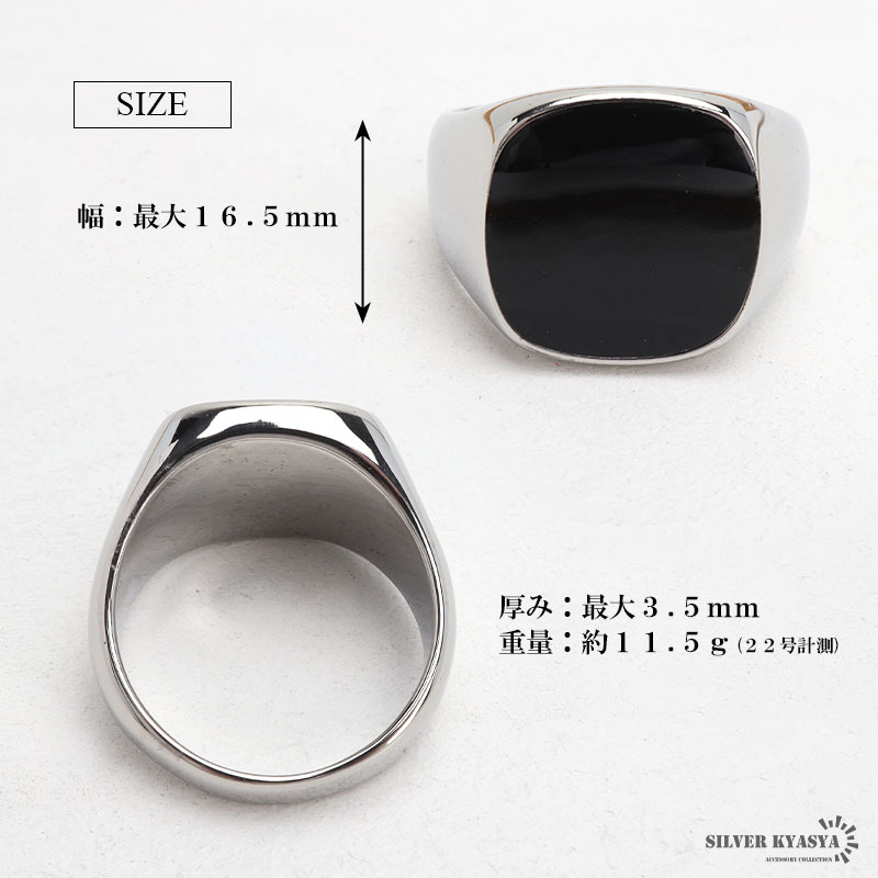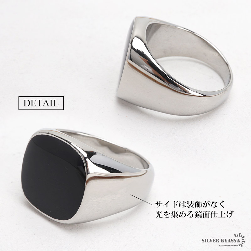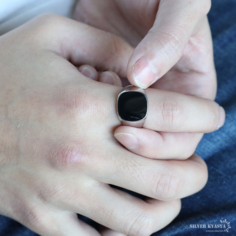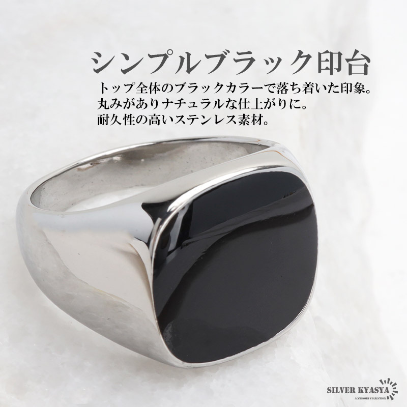 | 商品概要 | ■シンプルブラック印台 トップ全体のブラックカラーで落ち着いた印象。丸みがありナチュラルな仕上がり。耐久性の高いステンレス素材。 ■ステンレス素材を使用 金属部分は頑丈なことで知られるステンレス素材を採用。耐久性はもちろん耐水性も高く水場での着用も可能。金属アレルギーも出にくいとされている金属です。 |