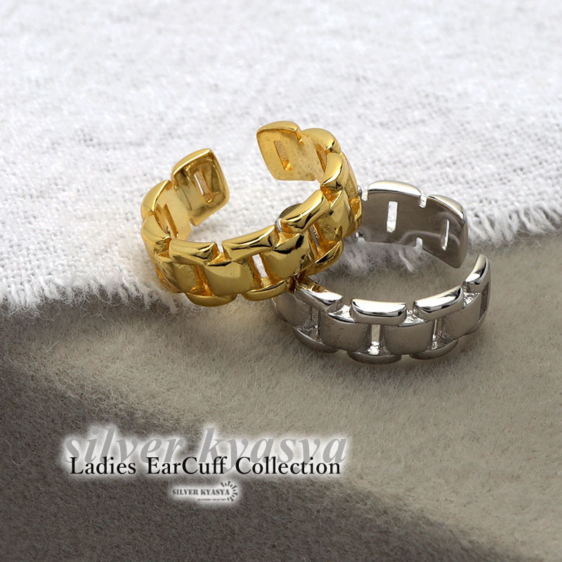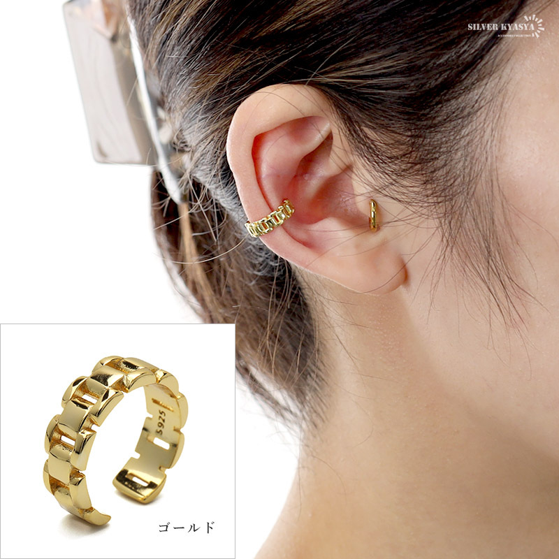 チェーン風のデザインが洗練された大人っぽい雰囲気を纏うイヤーカフ。